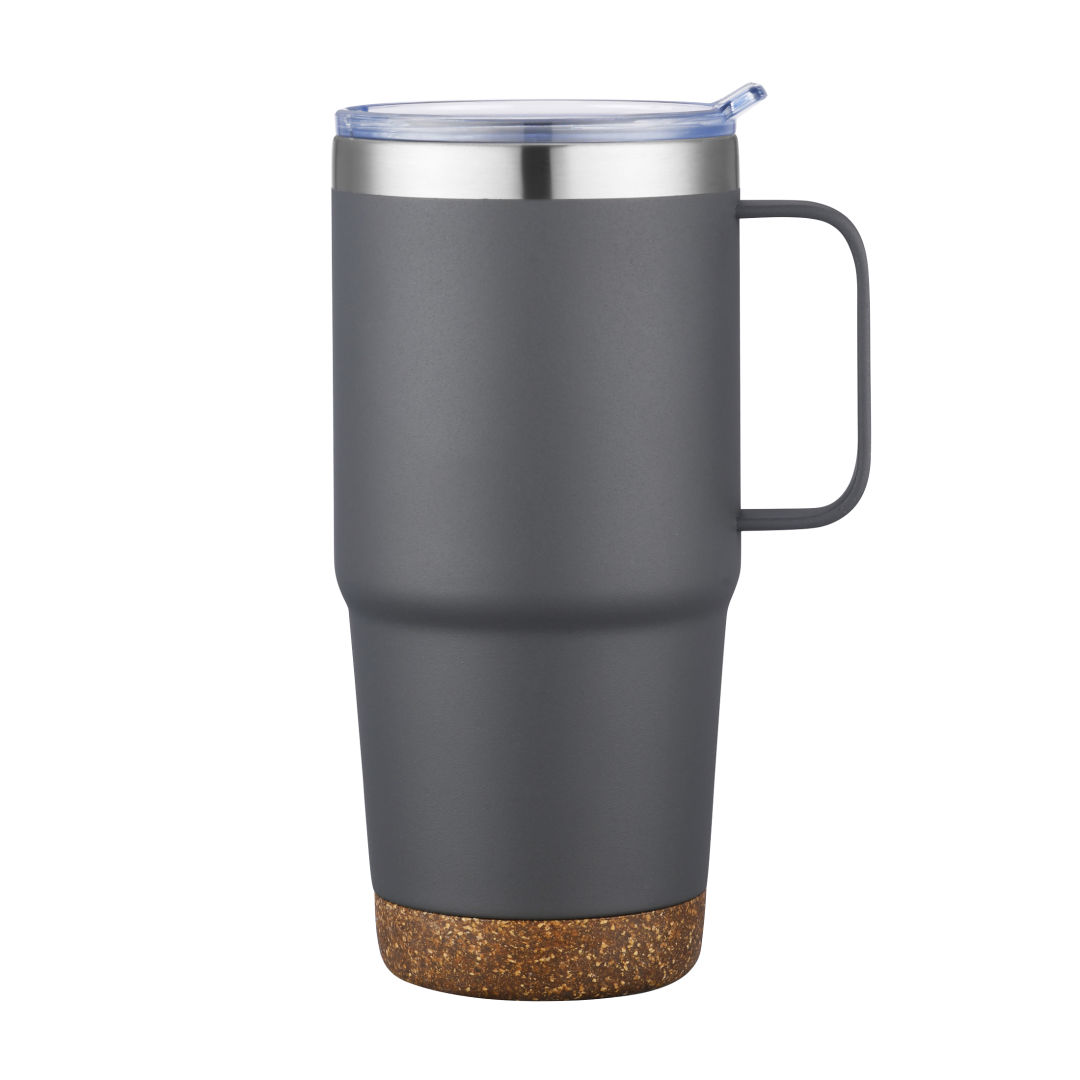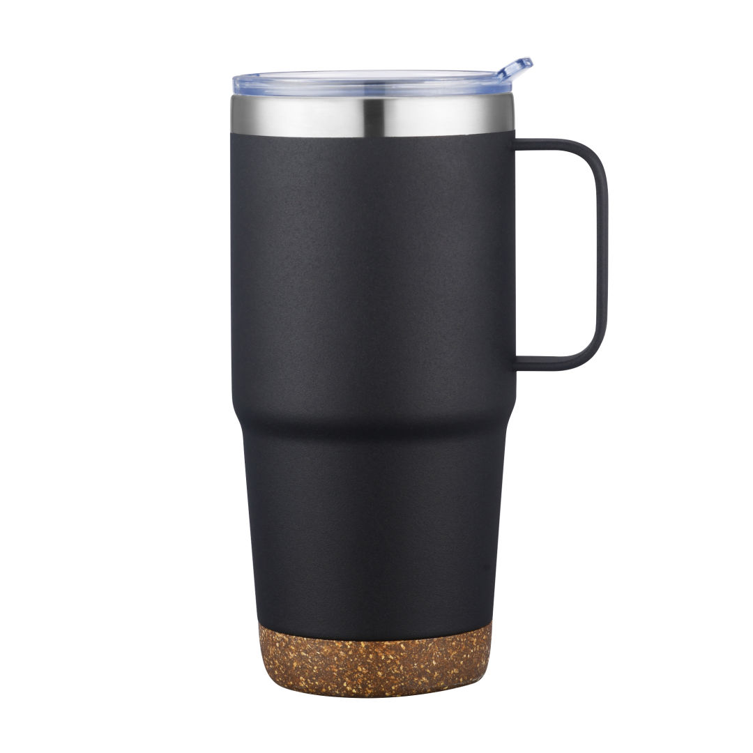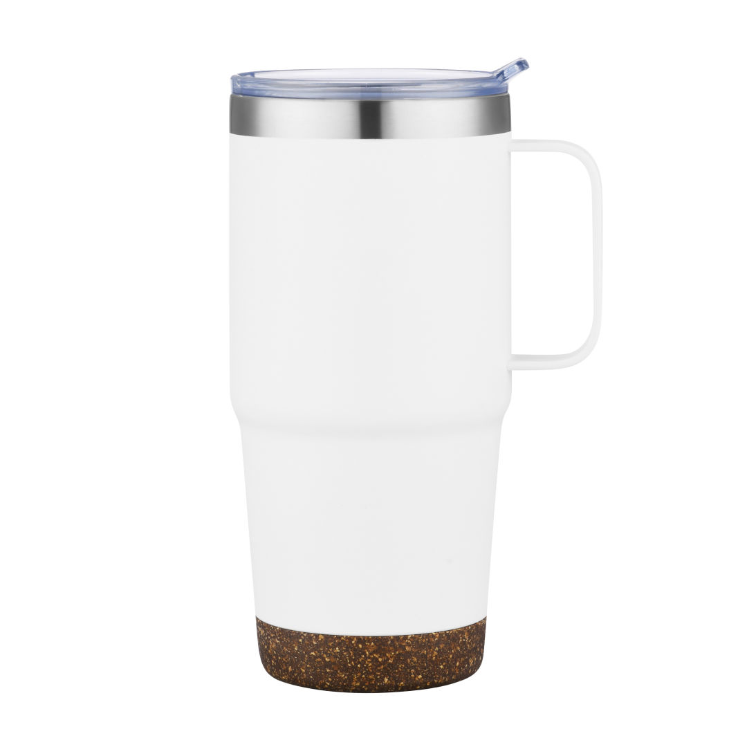 The 24oz Akira Travel Mug with Cork Bottom is the perfect size for your morning cup of joe! This double wall, powder coated, stainless steel mug features a handle for carrying and drinking convenience! Plus, the eco-friendly cork bottom gives an extra element of style. Product Size: 4.5″ W x 7.625″ H. 4.5″ W x 7.625″ H