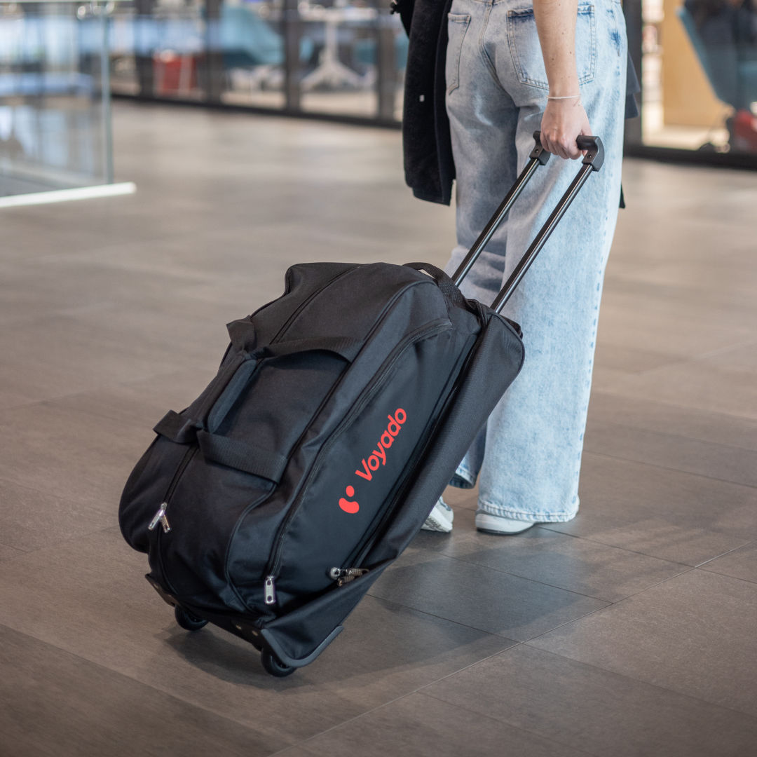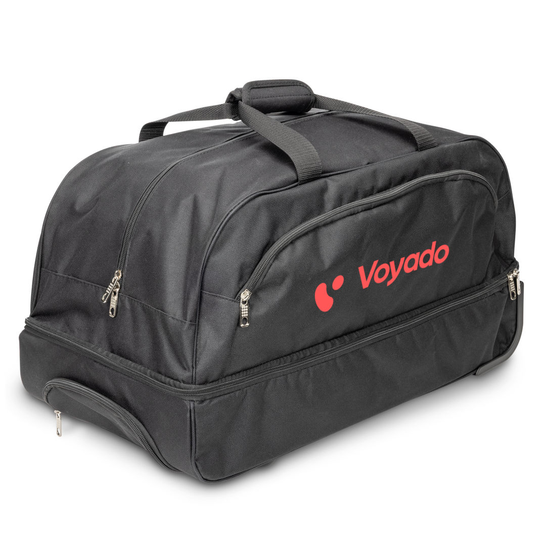The Ambros Trolley Duffel Bag combines the versatility of a duffel with the convenience of a rolling suitcase. It features a sturdy pull handle, two carrying handles, and a front pocket for quick-access essentials. Perfect for travel or weekend getaways, this bag offers both function and flexibility on the go. Main body fabric is made from100% 600D polyester.Product Size: 23.5″ W x 11.5″ H x 12″ D. 23.5″ W x 11.5″ H x 12.0″ D