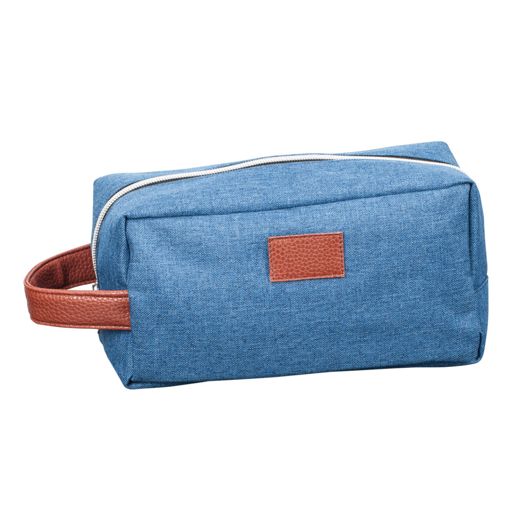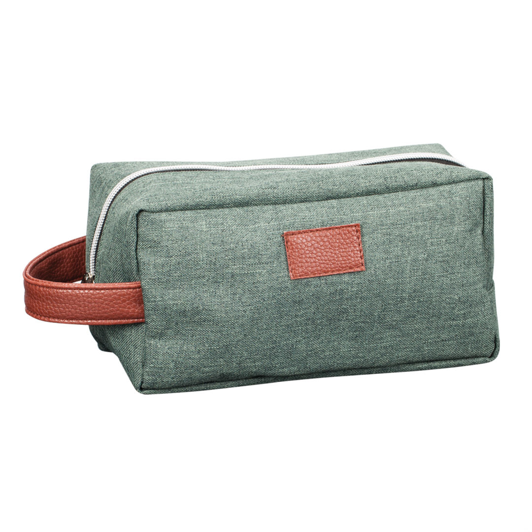 Toiletry / cosmetic bag made from 600D heather fabrication- Perfect for carrying at events, in travel and day-to-day toting- Leatherette carry handle and accent creates uniform design- Zippered to ensure safety of its contentsProduct Size: 9″ x 5″ x 4″. 9.0″ W x 5.0″ H x 4.0″ D