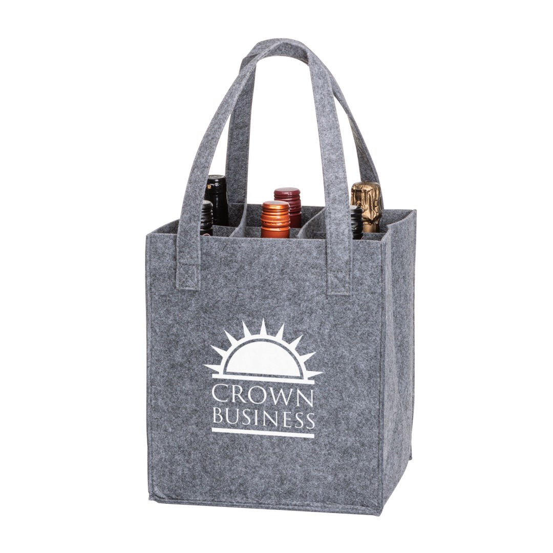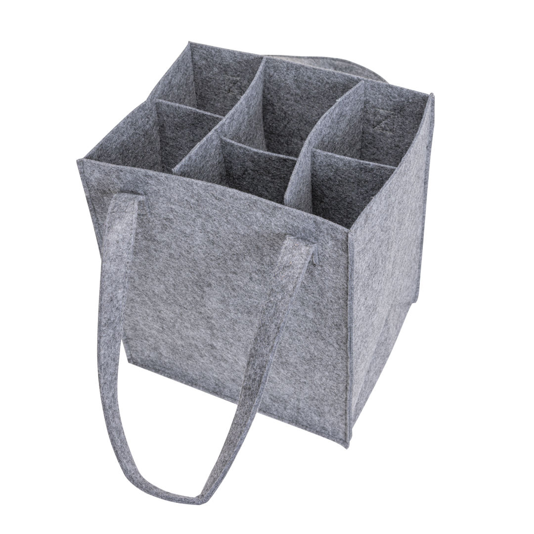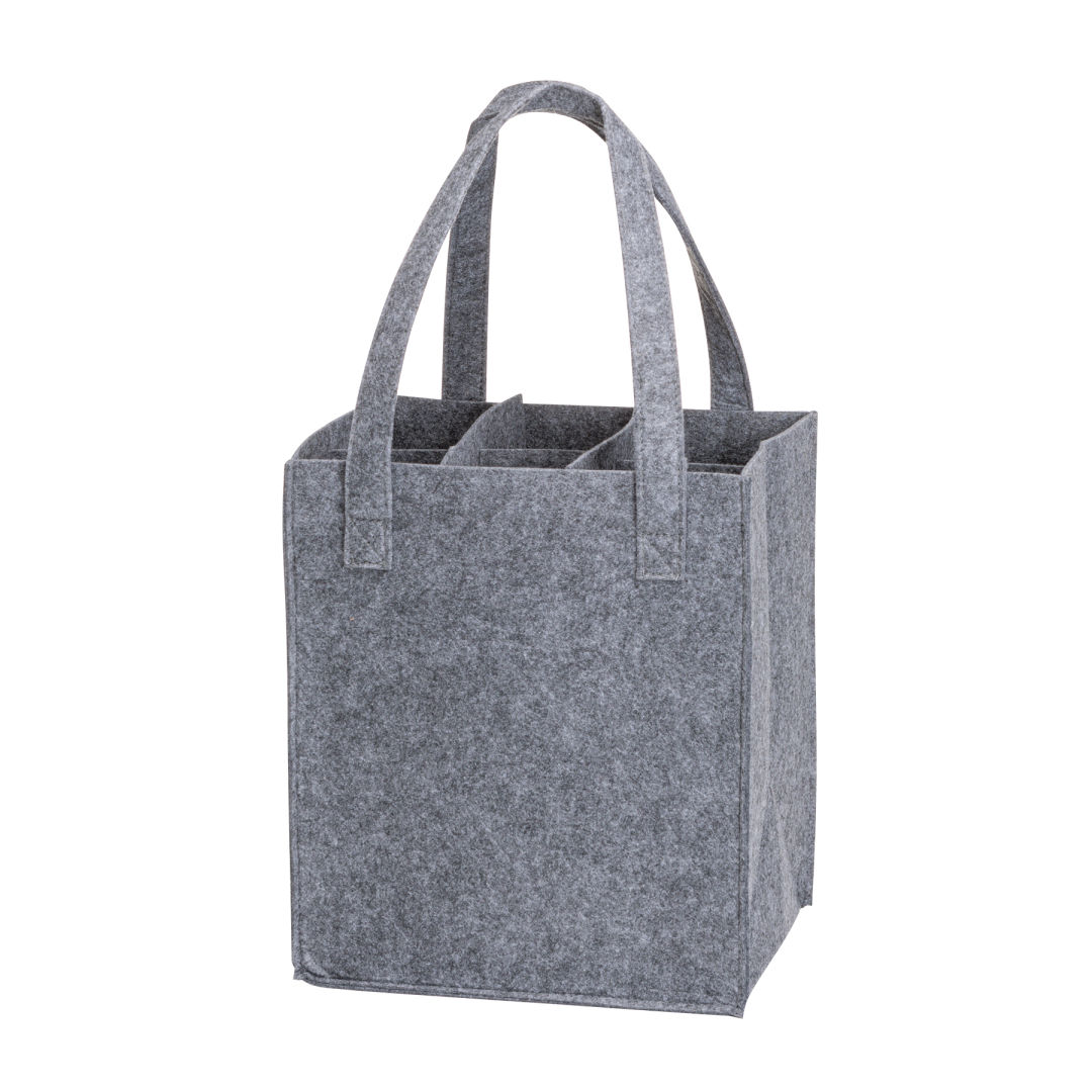 Carry your glass bottles safely and securely with the Batura Bottle Carrier! This bag is a game changer when going to the grocery store or the liquor store. Carry 6 bottles at a time with the handy insert that separates each bottle to avoid them clanging together. The insert is removable so you have the option of using the bag as a bottle carrier, or as normal! Both the bag and insert are made from eco-friendly post-consumer RPET 2mm felt (100% Polyester & GRS Certified). Also featuring two carrying handles, the Batura Bottle Carrier is an eco-friendly and convenient option to carry with you on your grocery run, or at any time when transporting your essentials from point A to point B. 9.875″ W x 11.375″ H