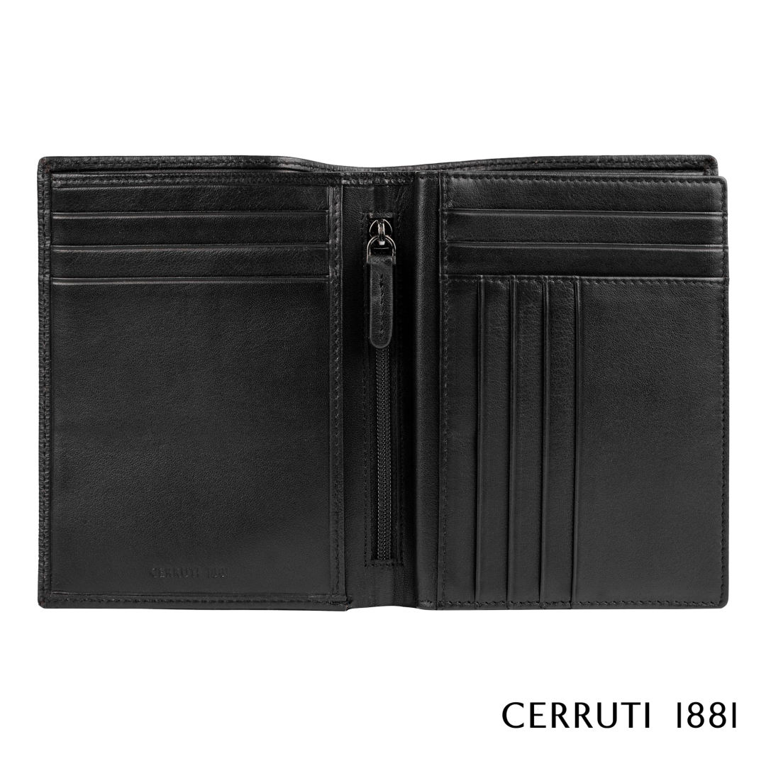 The Cerruti 1881® Bond Travel Wallet brings a little twist to all time classic products. Made of carefully chose leather with a subtle epi grain, they are signed by a metal plate that plays on contrast between metal colors & textures. This black version is adorned with a matte black & gun plate, for a resolutely masculine & monochromatic feel. This folded travel companion is practical and roomy, with numerous slot allowing for a perfect organization, as well as a note compartment and a zipped compartment.Product Size: 4.53″ W x 5.71″ H x 0.79″D. 4.53″ W x 5.71″ H x 0.79″ D