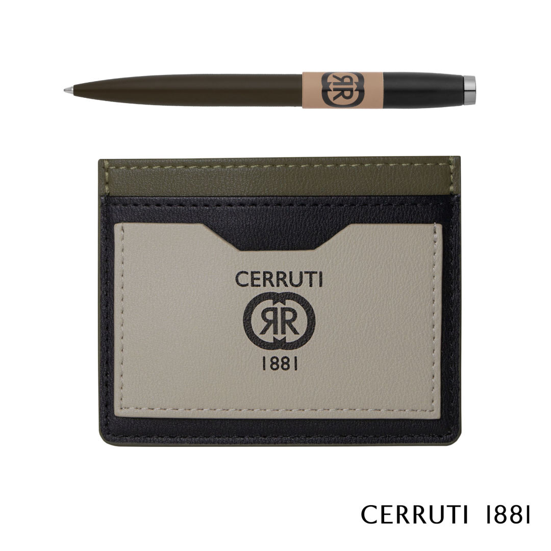 Delight in style with the Cerruti 1881 Brick Ballpoint Pen & Card Holder Gift Set, featuring the tricolored Brick card wallet made from leatherette with an oversized printed signature. The matching Brick ballpoint pen boasts textured matte lacquers and a subtle printed signature, offering a modern graphical touch.Giftbox Size: 6.5″ W x 1.38″ H x 5.31″ D. 6.5″ W x 1.38″ H x 5.31″ D