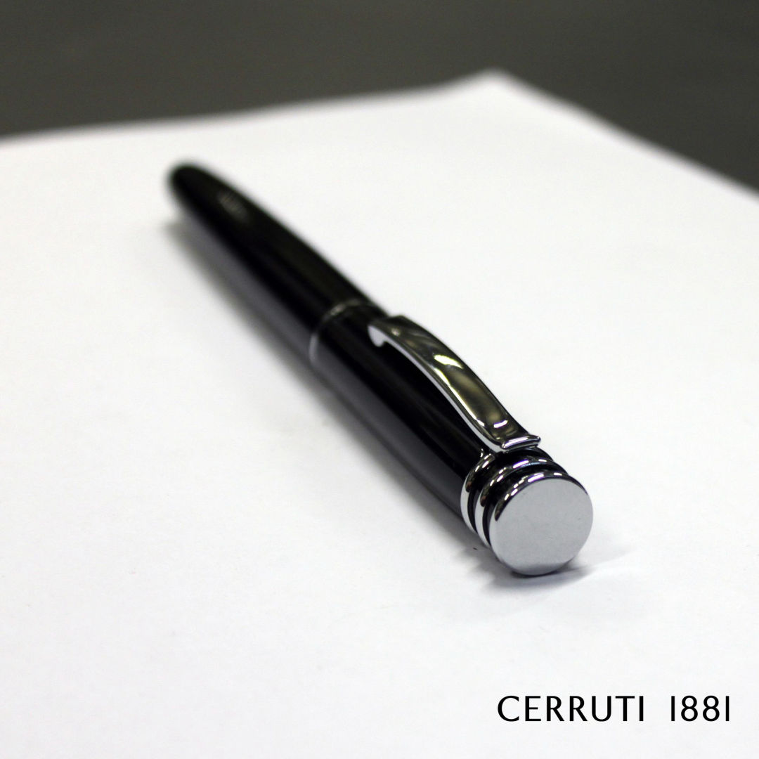 Indulge in sophistication with the Cerruti 1881® Ring Top Pen, exuding timeless elegance with its black lacquer barrel and chrome details. With a comfortable grip section and presented in a sleek black gift box, it’s the epitome of refined writing luxury.Giftbox Size: 7.87″ D x 1.15″ H x 2.25″ D. 5.35″ W x 0.49″ H