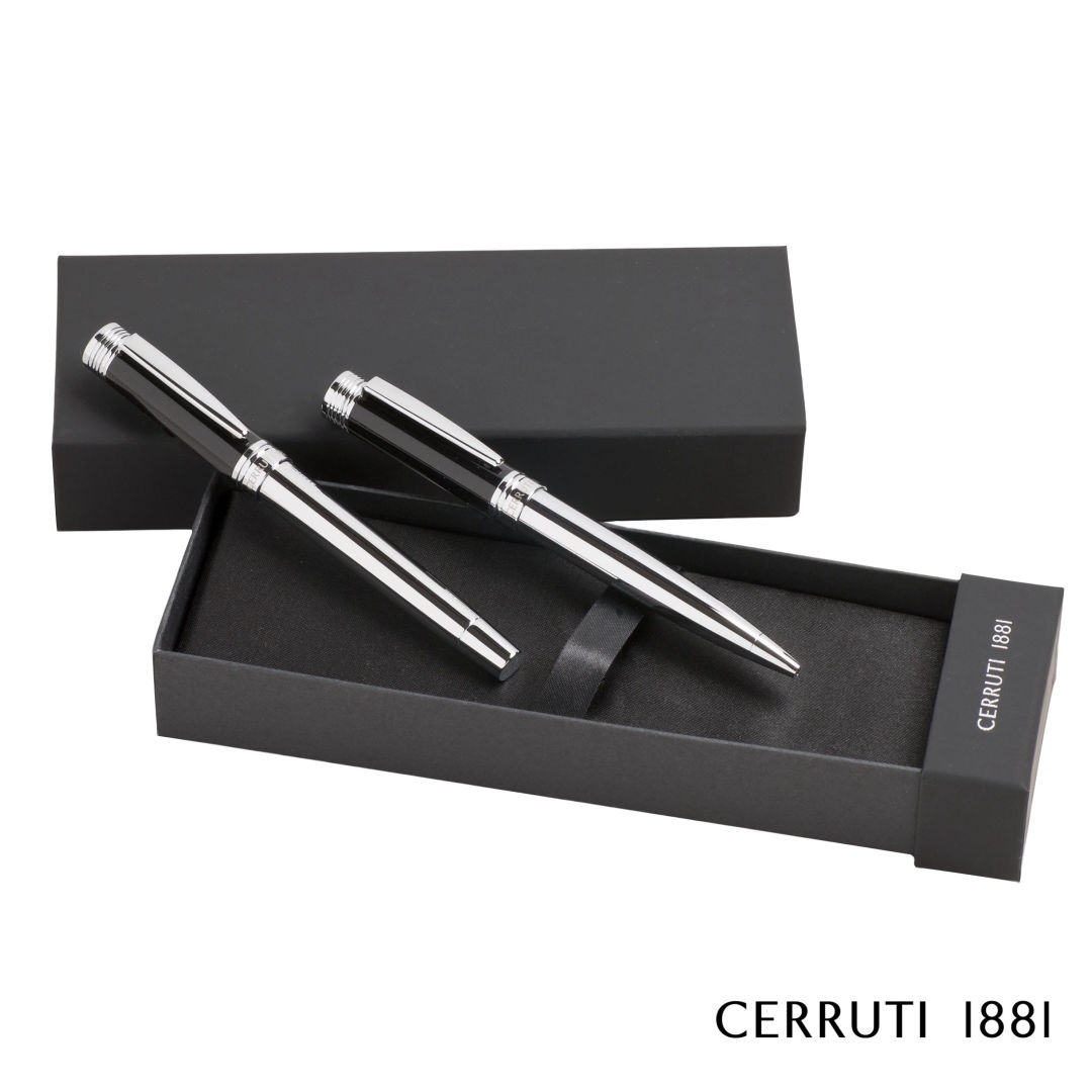The Cerruti 1881® Zoom Classic Ballpoint Pen & Fountain Pen Gift Set is composed of a ballpoint pen and a fountain pen from the ZOOM collection. The ZOOM collection is one of the best selling series from the CERRUTI 1881 writing instrument range. The body of the pens are chrome plated while the cap is in high-quality black lacquer. The set comes in a beautiful presentation box.Giftbox Size: 7.87″ W x 1.15″ H x 2.25″ D. 7.87″ W x 2.25″ H x 1.15″ D