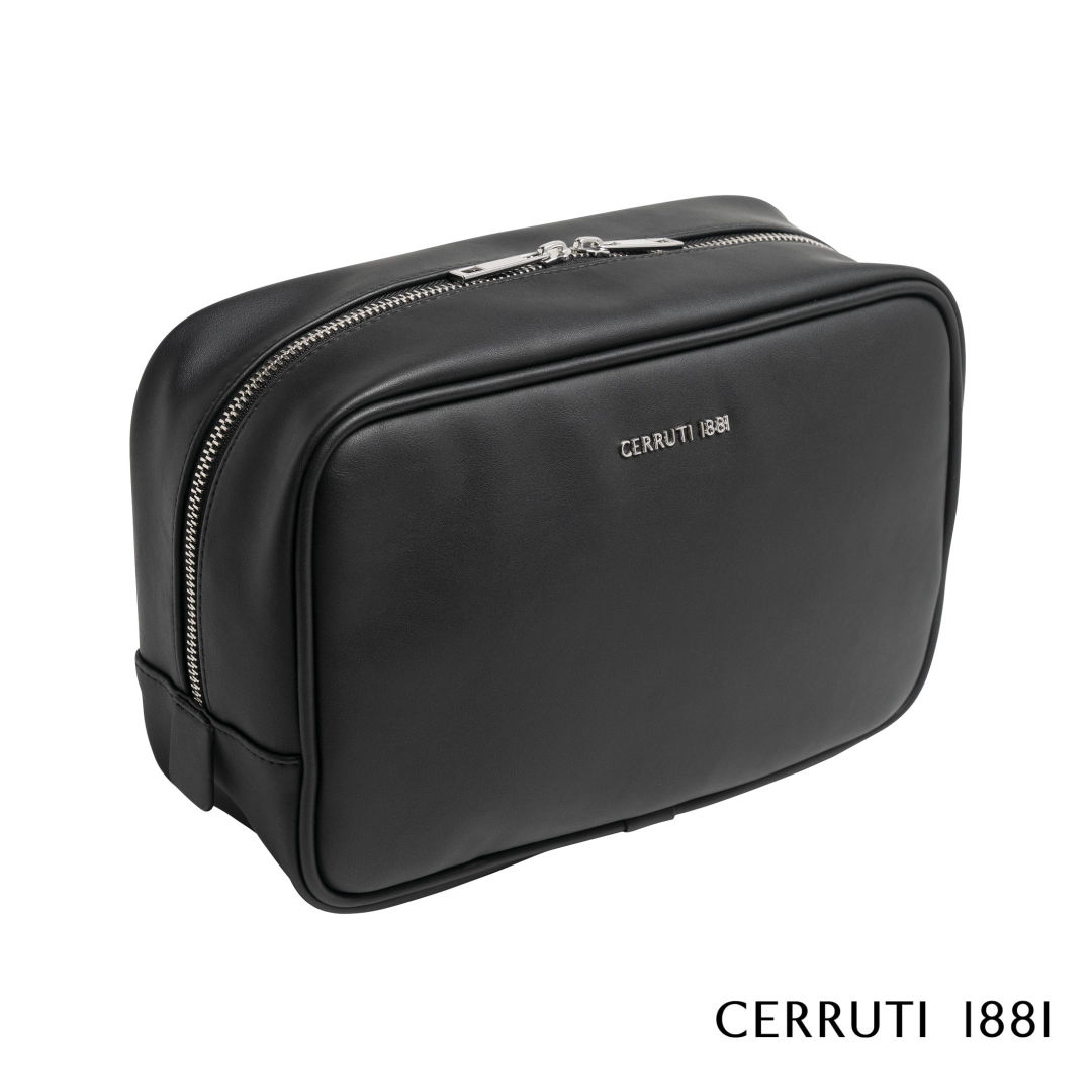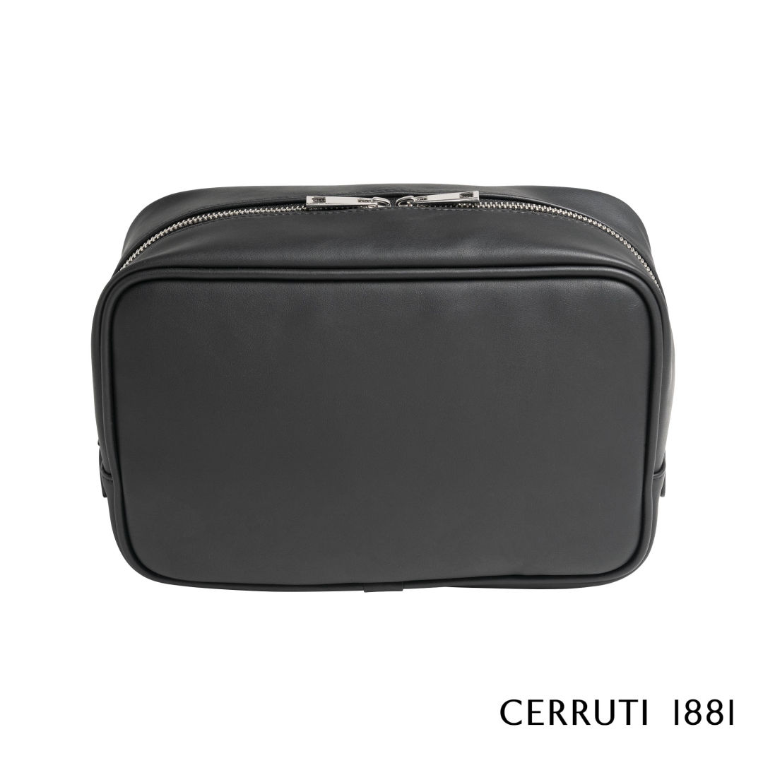 The “Zoom” toilette bag, with a minimalist design and a contemporary look, is made of a smooth and black material with a shiny chrome metal signature. This bag also features 1 small zippered inside pocket. Delivered in an elegant Cerruti 1881 cotton bag.Product Size: 10.24″ W x 6.70″ H x 3.94″ D. 10.24″ W x 6.7″ H x 3.94″ D