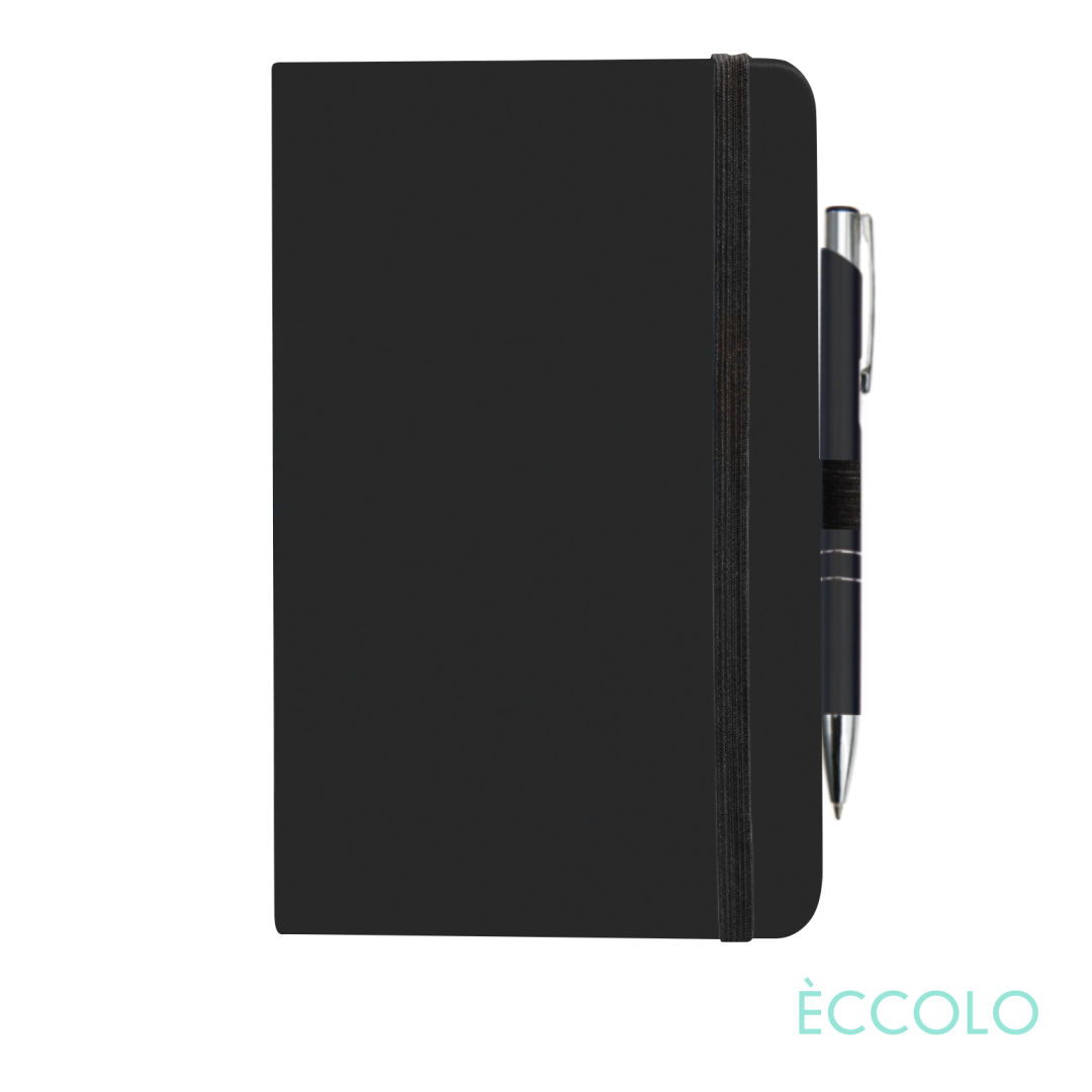 Stand out with our Calypso collection! Colored covers contrast sharply with the black page edges and other black accents to make a lasting impression.The Calypso Journal & Clicker Pen Features…- P197 Clicker Pen: Aluminum click-action ballpoint pen with chrome trim and medium German made refill.- Unique two-tone design with black-edged pages- Soft, flexible leatherette cover- 192 white lined pages- Acid-free 80-gram paper- Black end pages- Elastic closure (black)- Pen loop (black)- Bookmark Ribbon (black)- Gusseted back pocket (black) *Belly Band & Promo Page Inserts Optional. See Decorating Info for details. 5.5″ W x 8.5″ H
