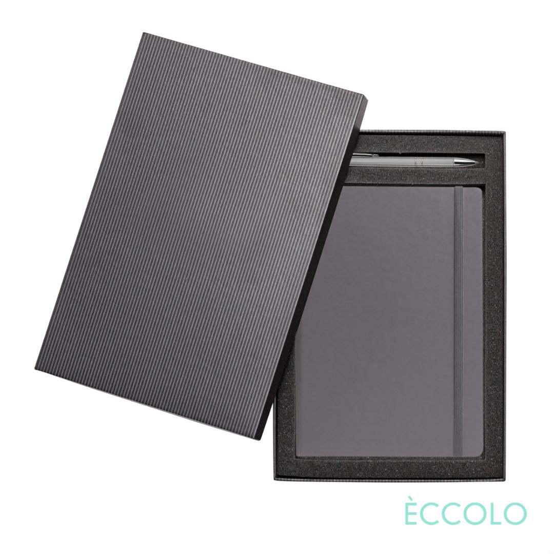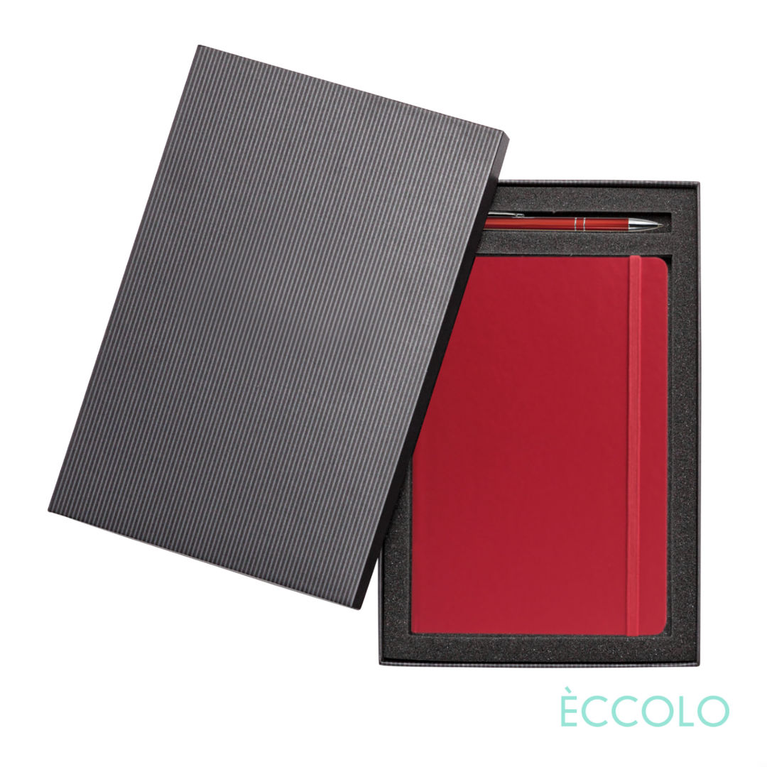 The “everything you need and more” journal. With all of the bells and whistles found in journals twice the price, our Techno journals are the top choice to get the most impact for your budget. The Techno Journal & Clicker Pen Gift Set Features…- P197 Clicker Pen: Aluminum click-action ballpoint pen with chrome trim and medium German made refill.- Black die-cut foam Gift Box- Smooth hardcover- 192 white, college ruled pages- FSC certified, 80 gram paper- Elastic band closure (color matched)- Ribbon marker (color matched)- Gusseted back pocket. – Dot grid paper also available*Belly Band & Promo Page Inserts Optional. See Decorating Info for details. 5.5″ W x 8.25″ H
