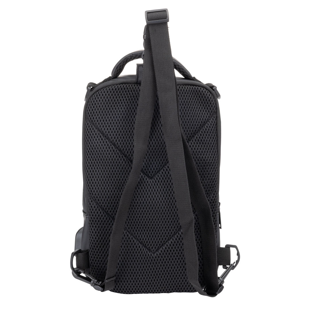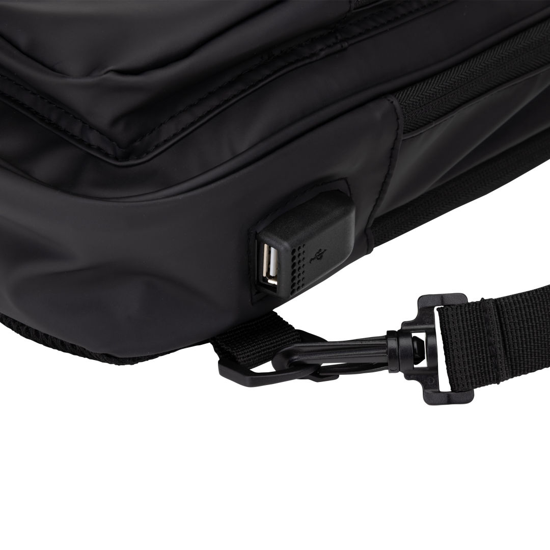 The Eider Laptop Backpack with USB Charging Port is a sleek, travel-ready carry designed for modern mobility. Made from durable leather composite, it features one spacious zippered main compartment and one smaller exterior zippered pocket to keep essentials organized. A built-in USB charging port adds on-the-go convenience, making this backpack an ideal companion for commuting, business travel, and everyday use. Can be used as a traditional backpack or cross-body bag. Product Size: 7″ W x 12″ H x 2.75″ D. 7.0″ W x 12.0″ H x 2.75″ D