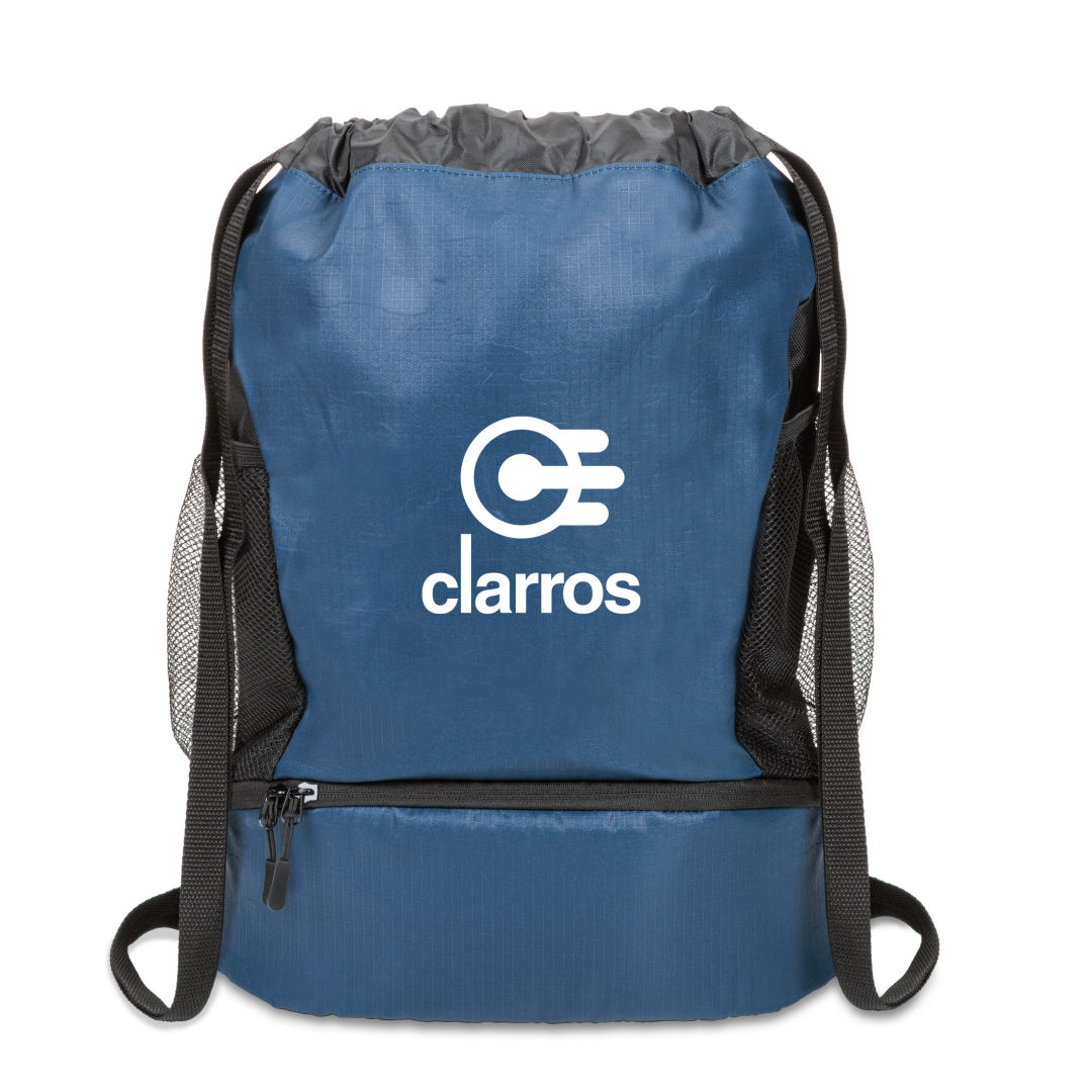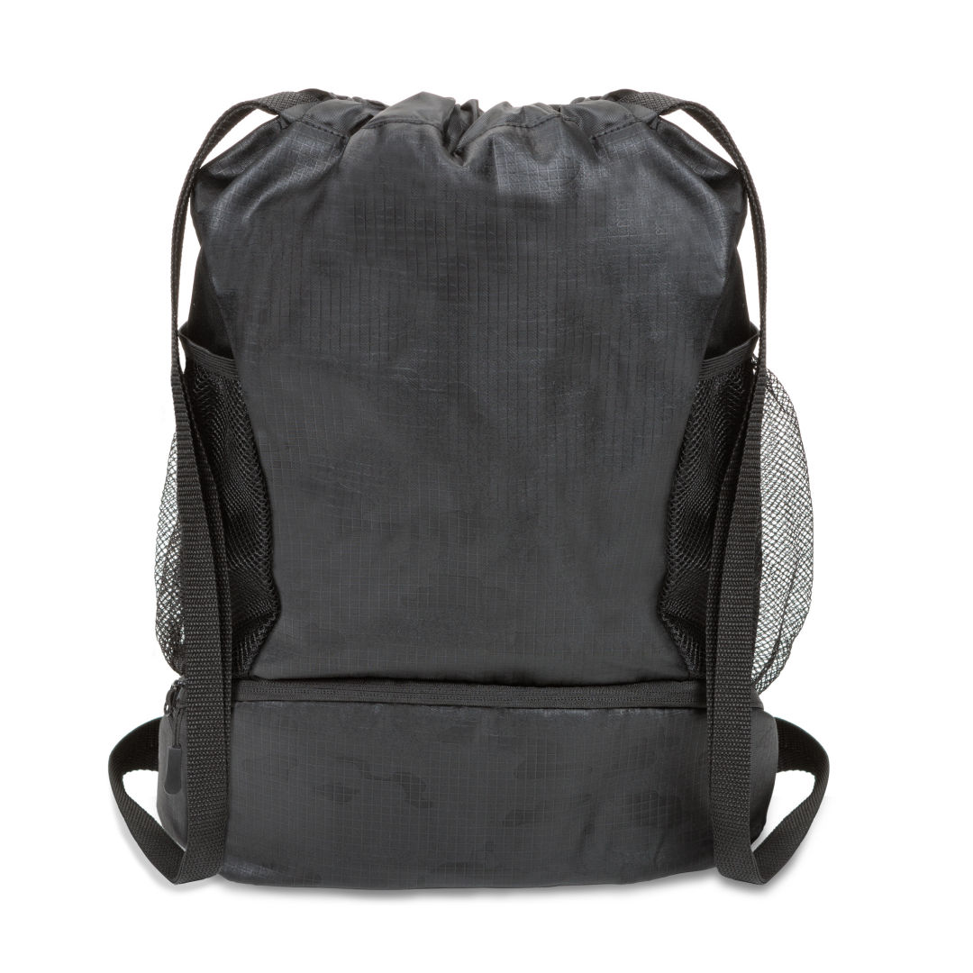 Our innovative Fitz Drawstring Bag features a zippered bottom compartment and two side mesh pockets – a versatile and stylish solution for carrying your essentials in ultimate convenience and style.Product Size: 15.75″ W x 18.75″ H x 5.5″ D. 15.75″ W x 18.75″ H x 5.5″ D