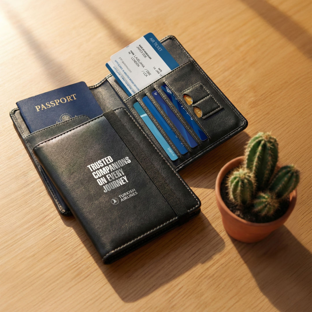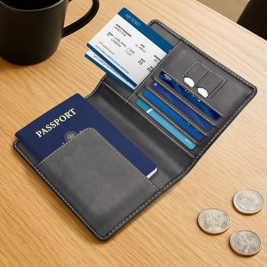 Designed for the conscious traveler, the Gallen Passport Holder & Wallet is made from innovative cactus leather containing 45% cactus material by weight. It features dedicated slots for your passport, travel documents, cards, and currency—keeping essentials secure and organized on the go. Sleek, sustainable, and cruelty-free, it offers a refined way to travel lighter and greener.Cactus leather is a sustainable, cruelty-free material made from mature nopal cactus leaves, requiring minimal water, no pesticides, and leaving the plant to regrow. Soft, breathable, and mostly biodegradable, it offers an eco-friendly alternative to animal leather and synthetics for products like bags, wallets, and accessories. 4.25″ W x 5.875″ H x 0.5″ D