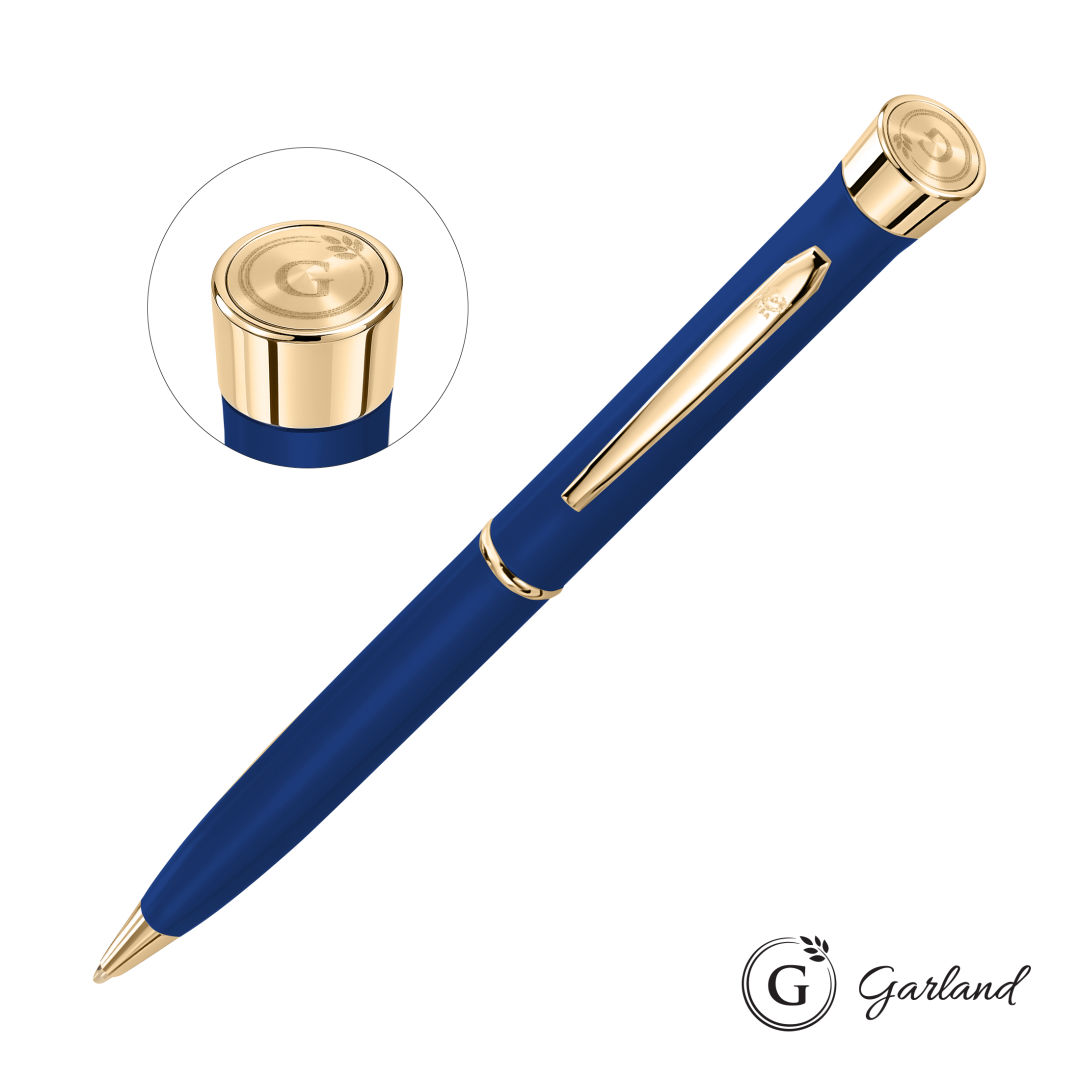 Our top selling Garland pen is taken to the next level with our new, finely detailed Emblem top. Your purchase includes a laser engraved, Garland top and one additional location laser engraving. Available in ballpoint, rollerball, mechanical pencil and rollerball/pencil set. Since 1926, Garland pens have been crafted with brass internal components, guaranteed for life, and beautifully presented in an individually packaged soft-touch tuck box.Pen size: 5.3″ W x 0.475″ H. 5.3″ W x 0.475″ H