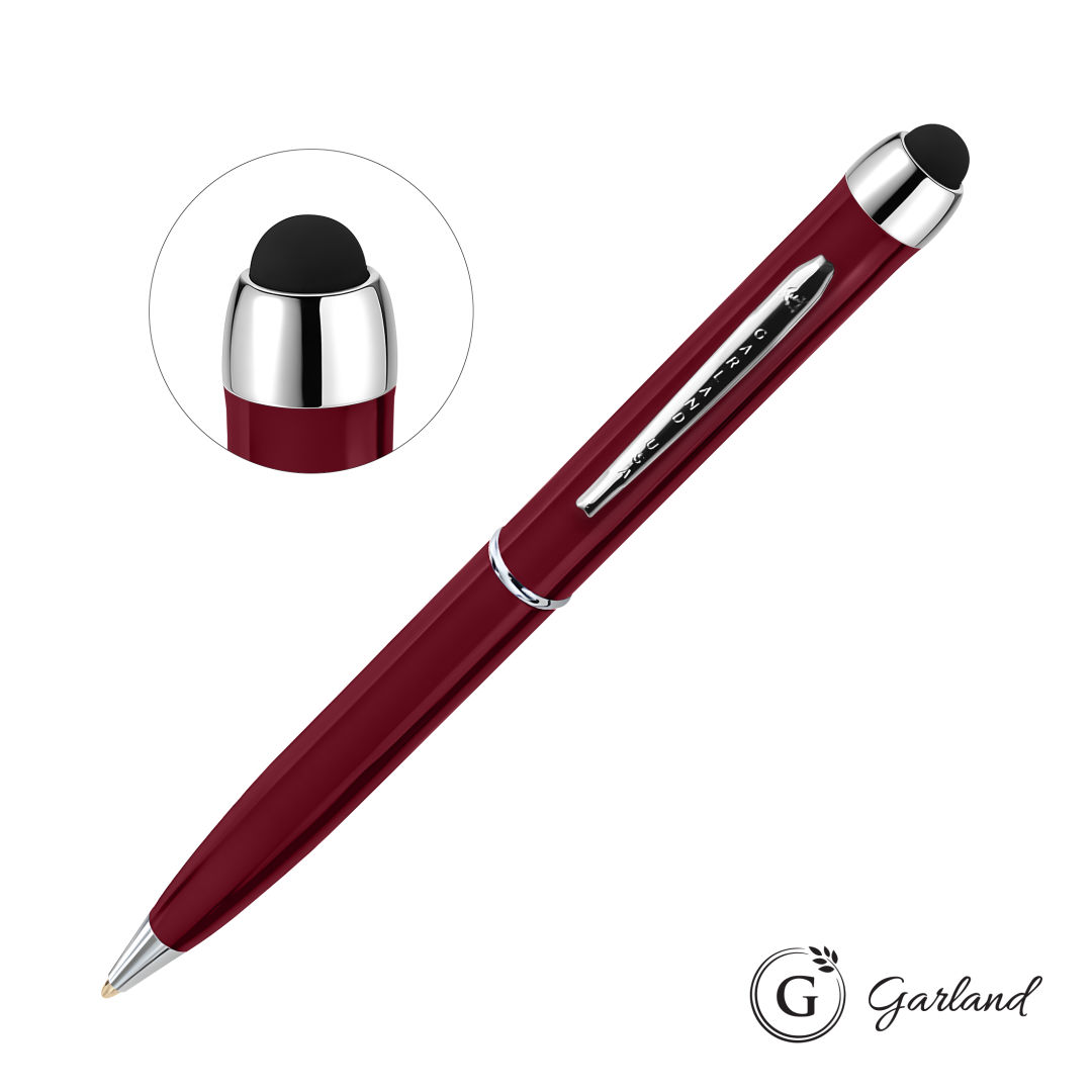 In a response to requests for a high-end USA made stylus, we took our best selling Garland matte collection and converted it into an elevated high gloss stylus pen. Your purchase includes one location laser engraving. Available in ballpoint only. Established in 1926, Garland pens feature brass internal components, are guaranteed for life, and come individually packaged in a soft-touch tuck box.Pen Size: 5.3″ W x 0.475″ H. 5.3″ W x 0.475″ H