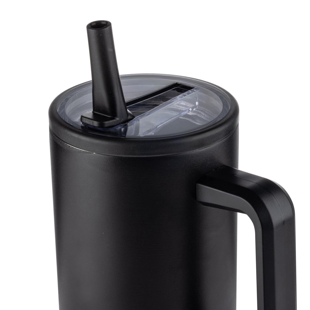 The Gulfoss Tumbler Mug is designed for everyday use, combining modern style with practical performance for both hot and cold beverages. Its inner layer and outer body shell are made from recycled stainless steel (SS304), offering durability, corrosion resistance, and a premium feel while keeping drinks warm for 6–8 hours and cold for 10–12 hours. Featuring an ergonomic handle and a sliding closure lid with a straw option. 5.5″ W x 10.5″ H x 3.875″ D