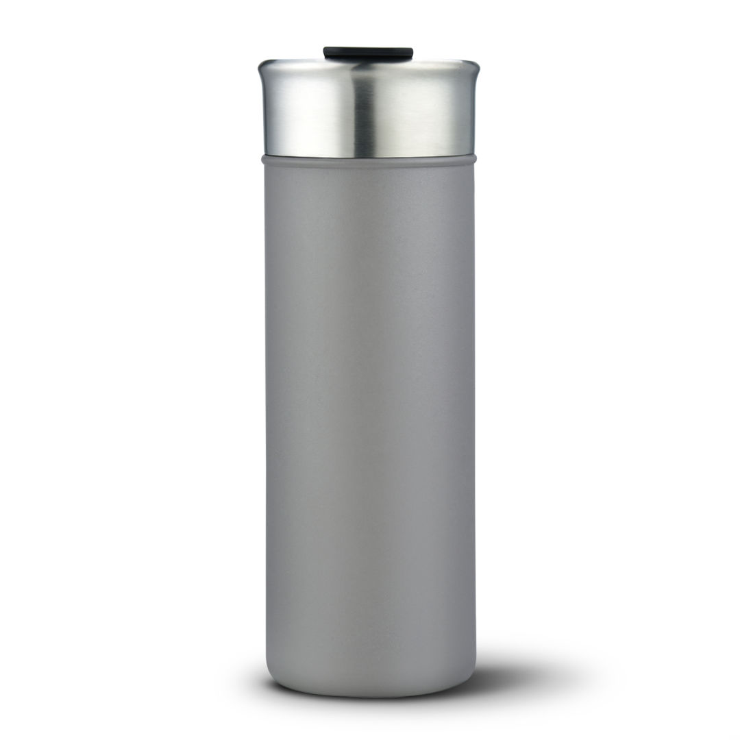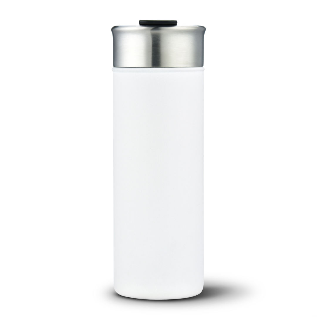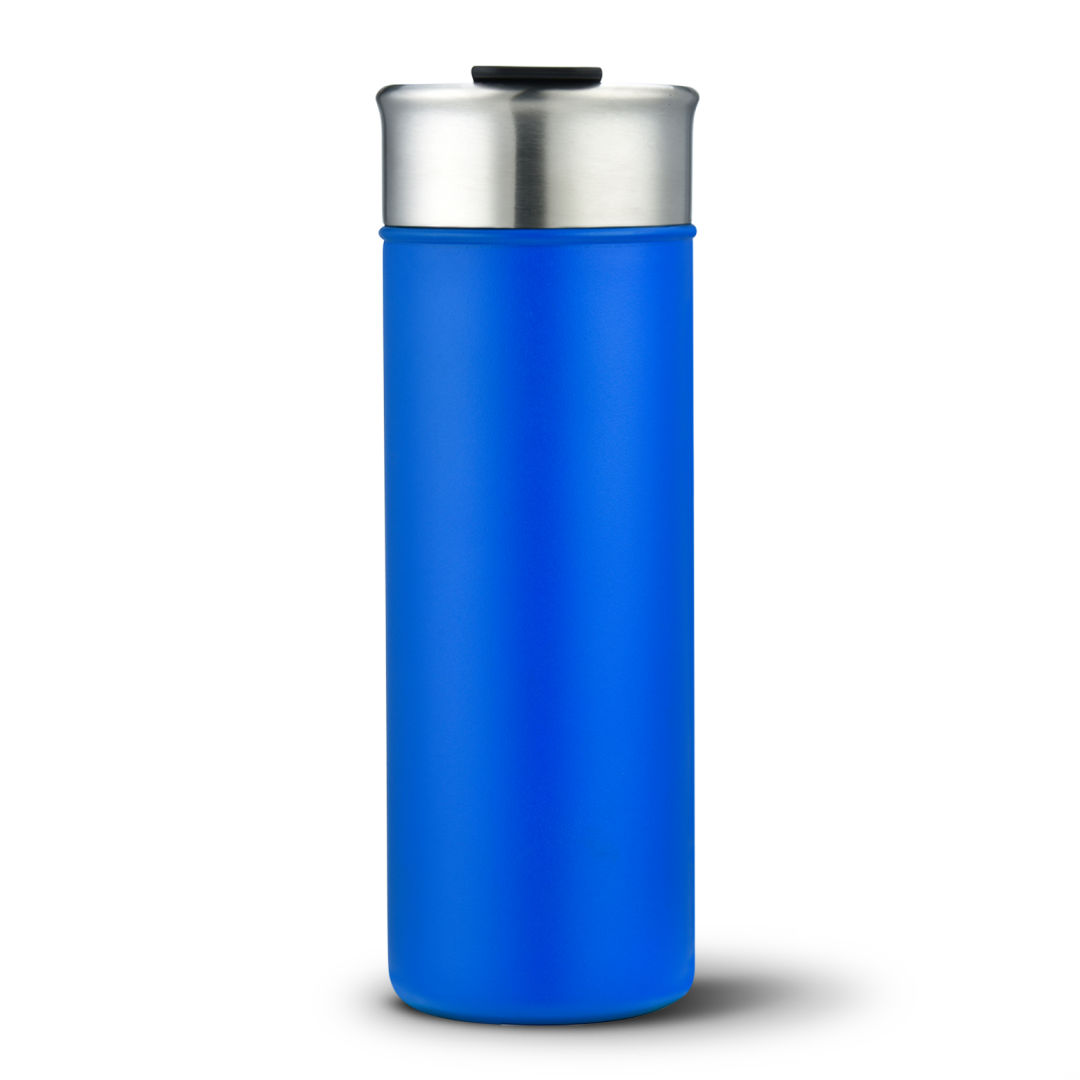 Stainless steel, vacuum sealed, double wall tumbler- Powder-coated matte finish in 6 distinct colors- Built-in spout with flip cover. 2.93″ W x 8.25″ H