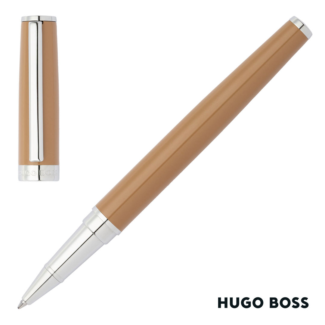 A timeless pen by BOSS, featuring our signature frame. Designed with a rollerball nib, this high-performance pen is crafted in brass with a glossy black-lacquer finish for a luxurious effect. Logos at the center ring and the top of the clip add refined touches to this accessory. Available in an array of colors, both neutral such as this black version, or color block pop options. 0.43″ W x 5.3″ H