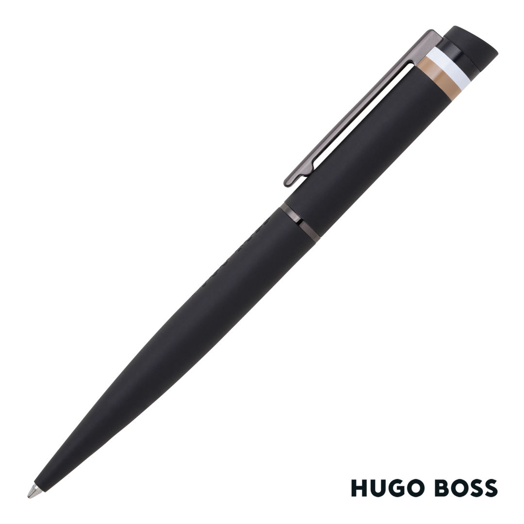 The Hugo Boss® Iconic Loop Pen silhouette has resolutely active & modern design elements, providing for an optimal writing experience. The soft-touch surface, unexpected logo placement & iconic stripes make it the ultimate modern writing piece. 5.7″ W x 0.46″ H