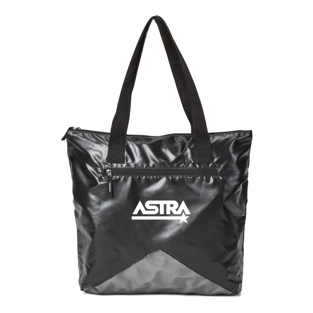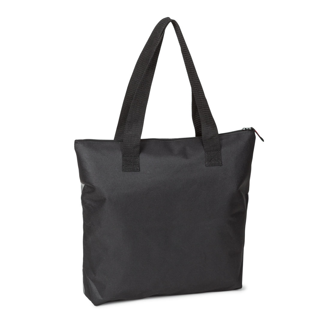 The Keaton Tote Bag features…- Two toned non-woven PP – Lightweight and foldable for easy storage- Front zipper picket- Trendy and contemporary design that shows off your brand for years to come. Product size: 17.75″ x 15″ x 4″. 17.75″ W x 15.0″ H x 4.0″ D