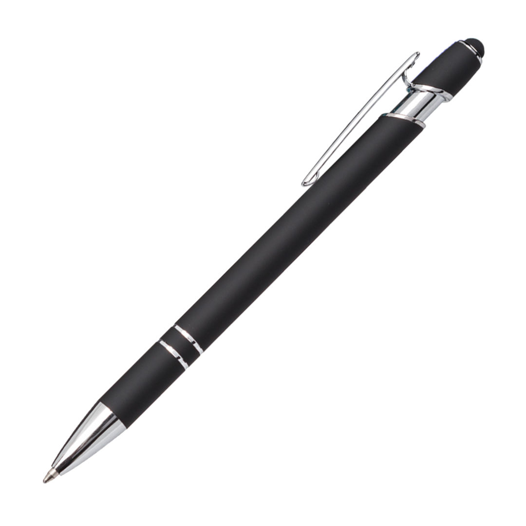 The Kurt Clicker Pen & Stylus features a satin metal barrel in various vibrant colors, chrome accents, a stylus pusher, and rubberized soft-touch coating for maximum comfort.