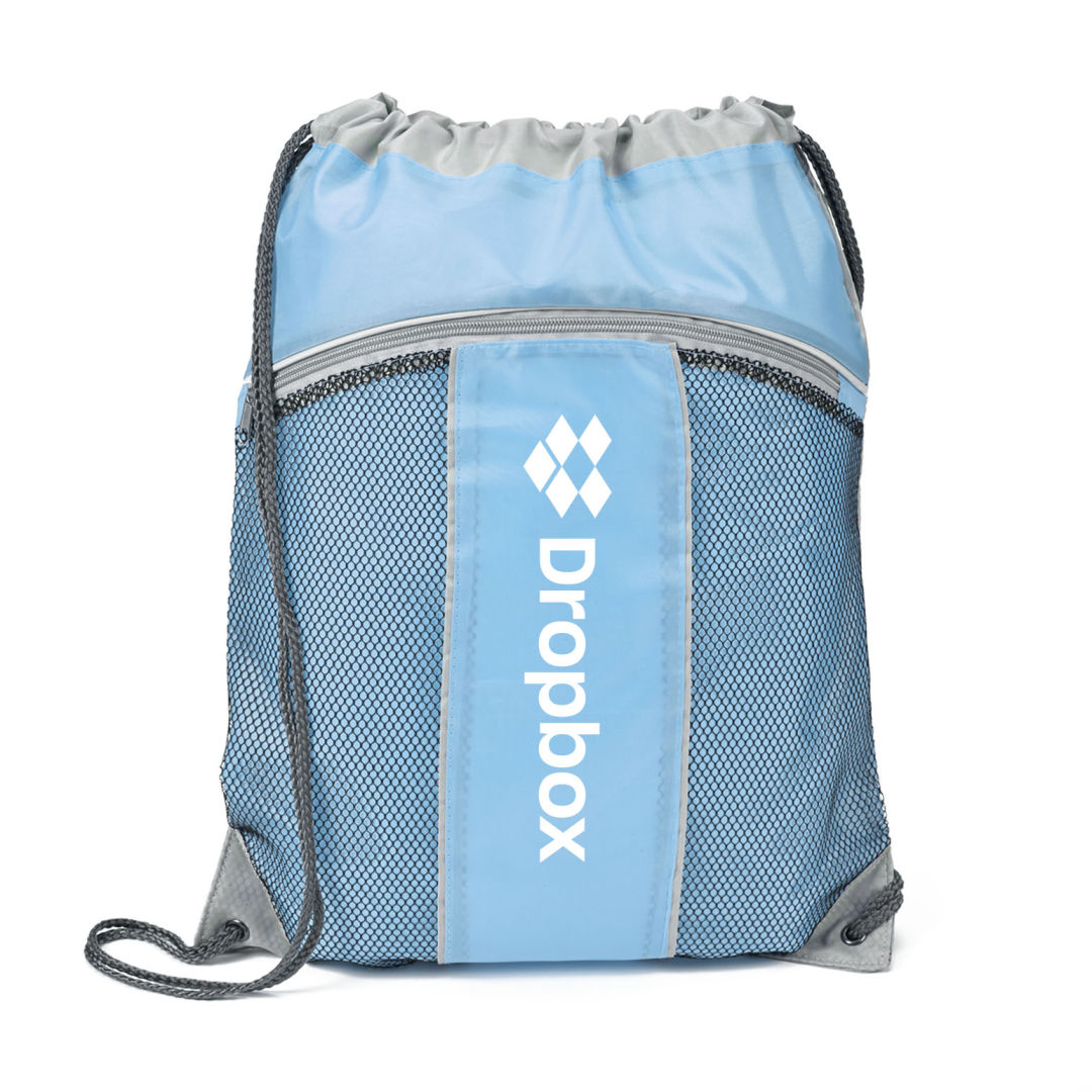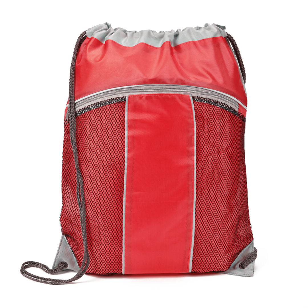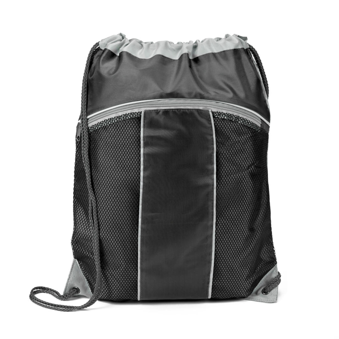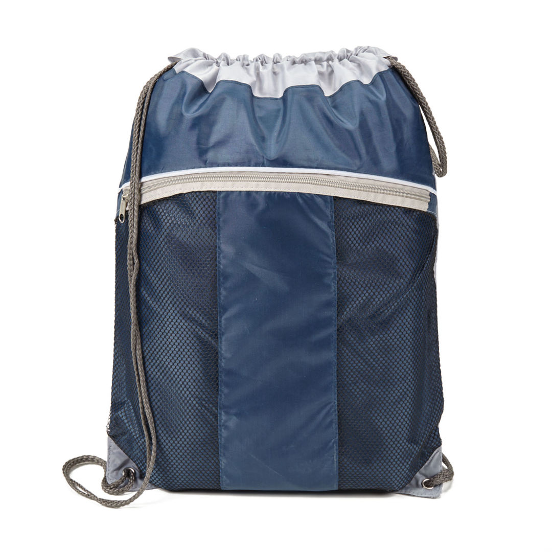 210D polyester, two tone mesh and nylon drawstring bag with front zippered pocket.Product Size: 14″ x 19″. 14.0″ W x 19.0″ H