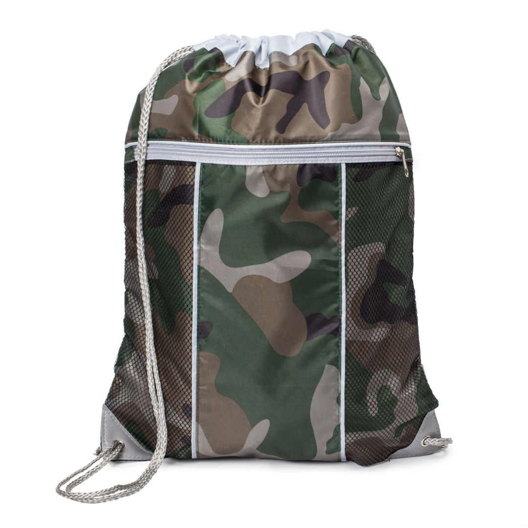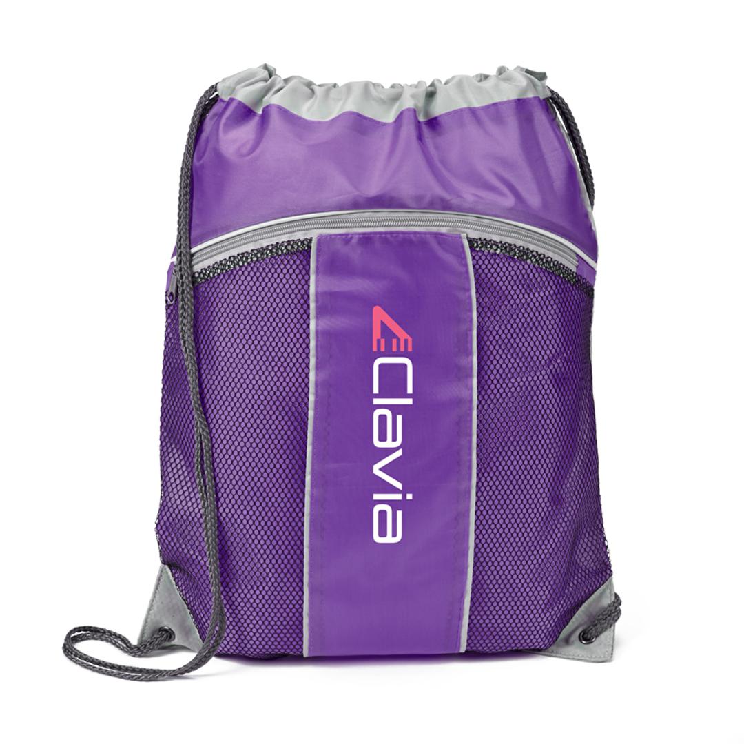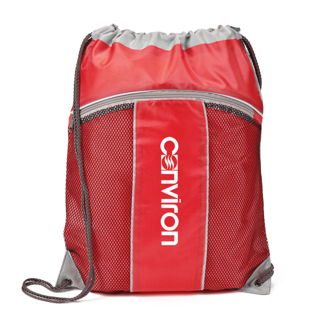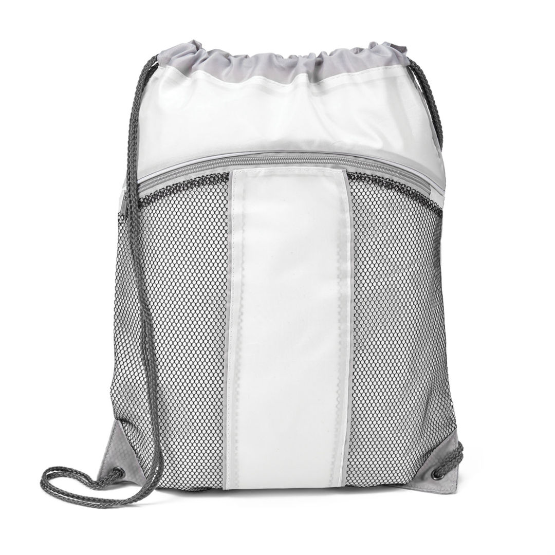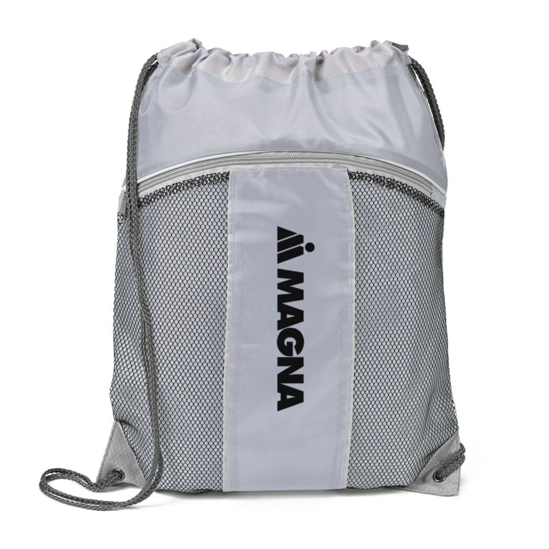 210D polyester, two tone mesh and nylon drawstring bag with front zippered pocket.Product Size: 14″ x 19″. 14.0″ W x 19.0″ H