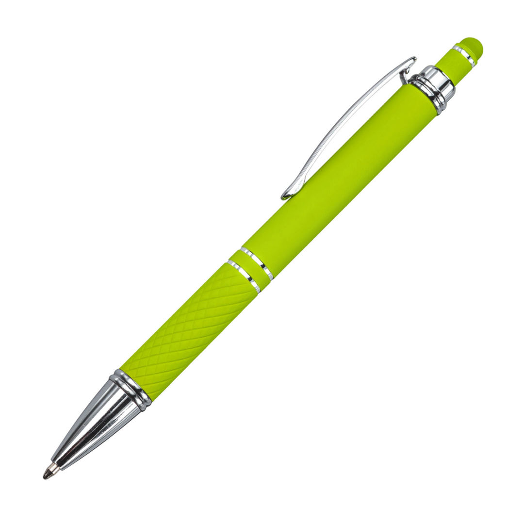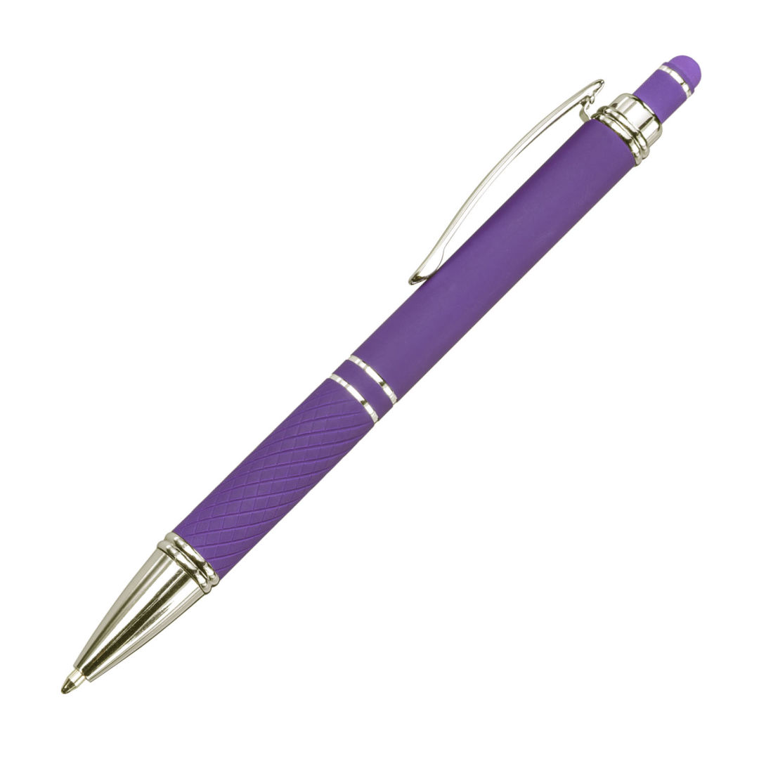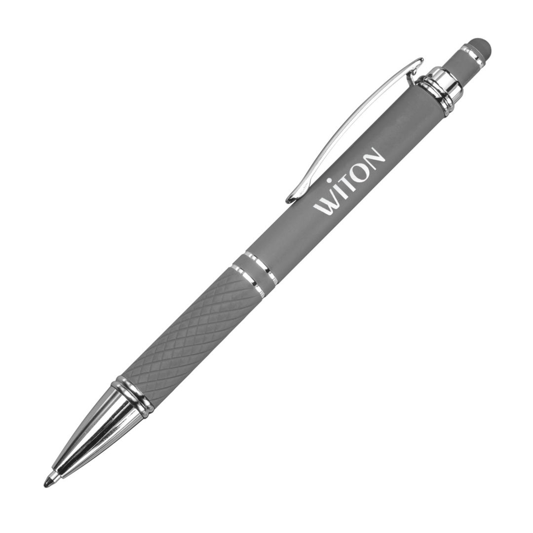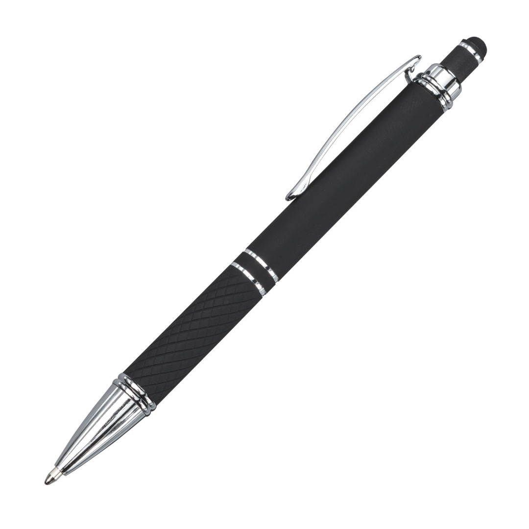 The Lewis Metal Pen features matte-finished rubber coating that combines with polished chrome accents and a matching chrome engraved logo. The unique cross-hatch design and added stylus on the pusher make this your go-to-writing instrument anywhere you go.