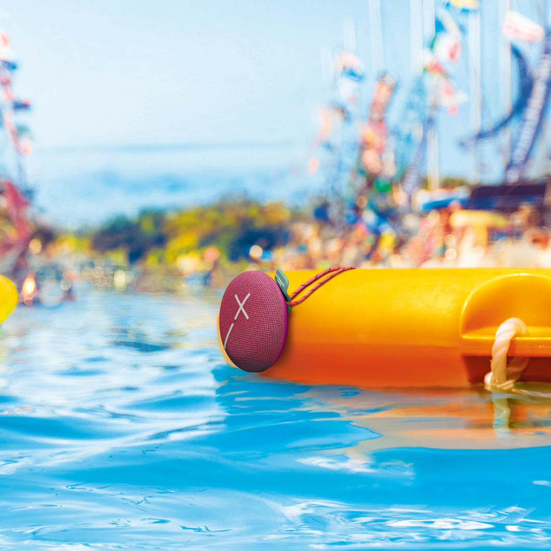 Enjoy high-quality audio anywhere with this Ultimate Ears MINIROLL Bluetooth wireless speaker. Its compact design includes a hookable strap for easy carrying during your ride. This speaker provides 12 hours of playtime, so you need not worry about frequent recharging. The rugged IP67 rating ensures reliability and safety in various environments. 4.13″ W x 1.9″ H x 4.83″ D
