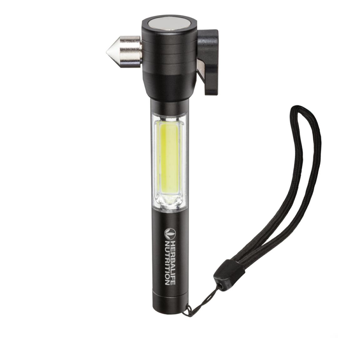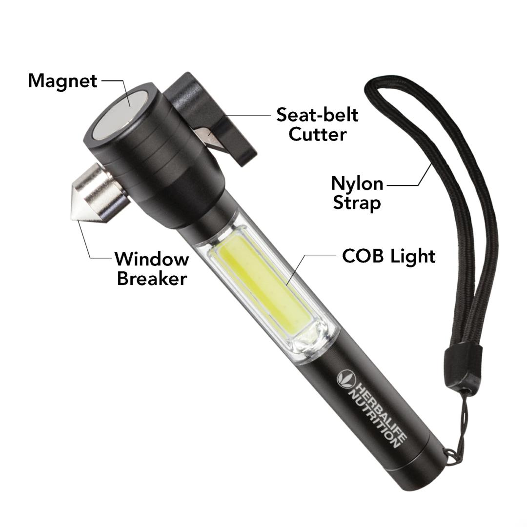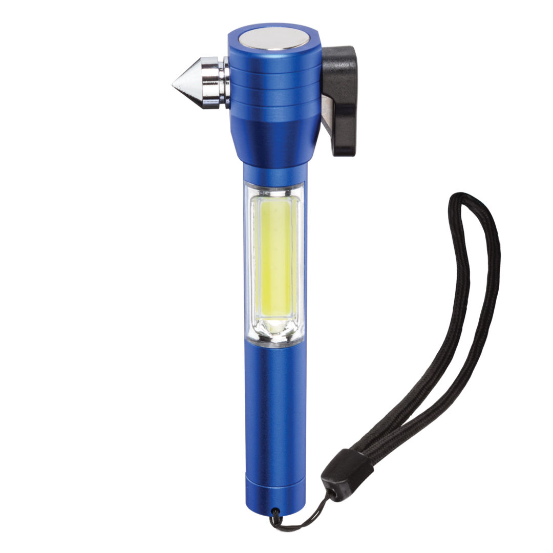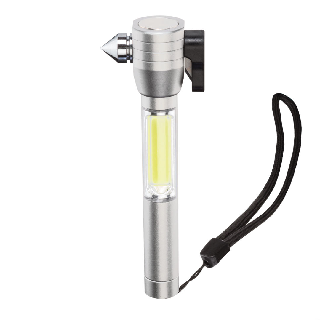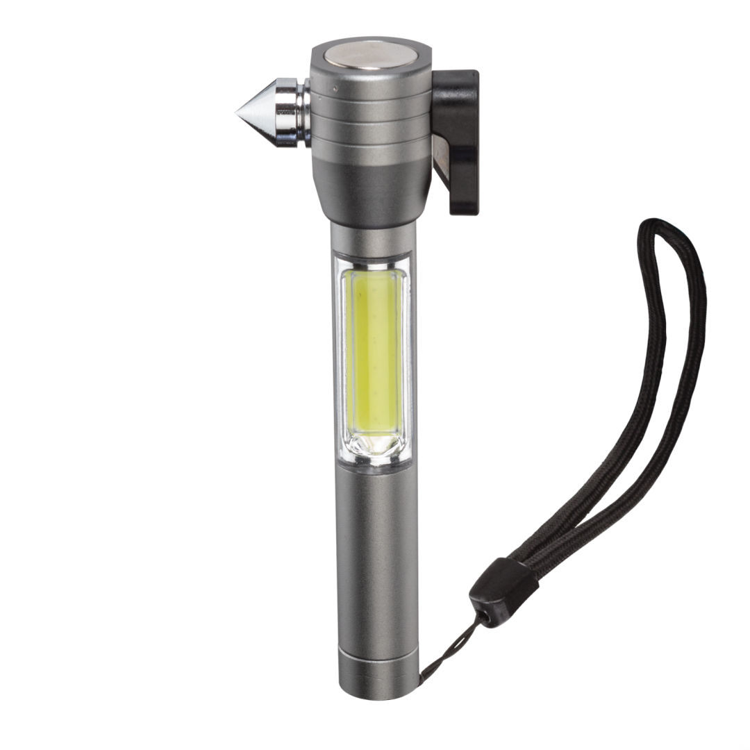 Auto emergency multi-tool with nylon wrist strap.- Compact design with bright 70 lumen COB light.- Magnetic head base for light multi-positioning .- Stainless steel side-window breaker.- Integrated safety belt cutter.- Anodized aircraft-grade hard aluminum alloy body.