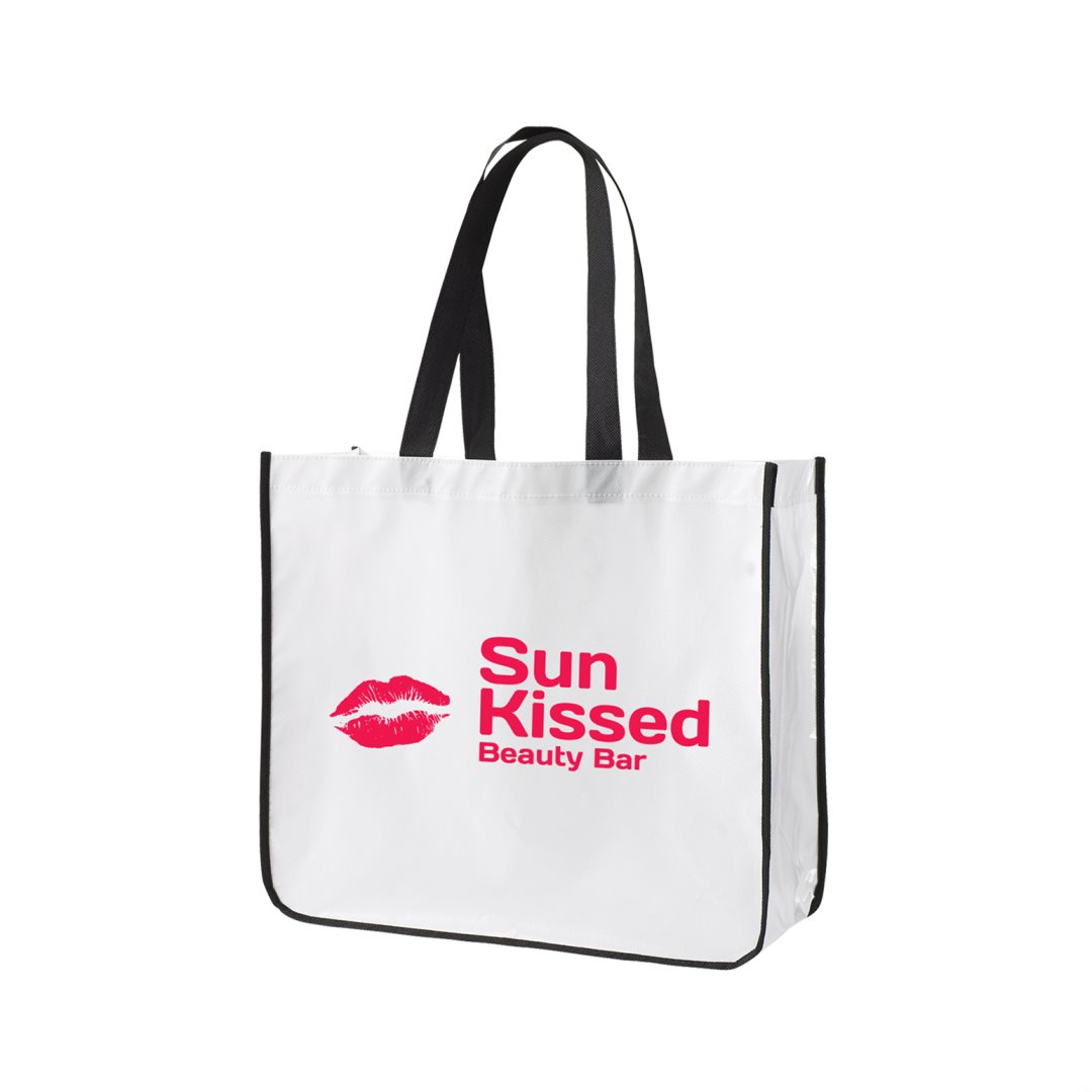 Durable fabric construction- 70 gram non woven and 30 gram laminated non woven polypropylene- Contrast colour side panelsProduct Size: 15.75″ x 14.5″ x 6.25″. 15.75″ W x 14.5″ H x 6.25″ D