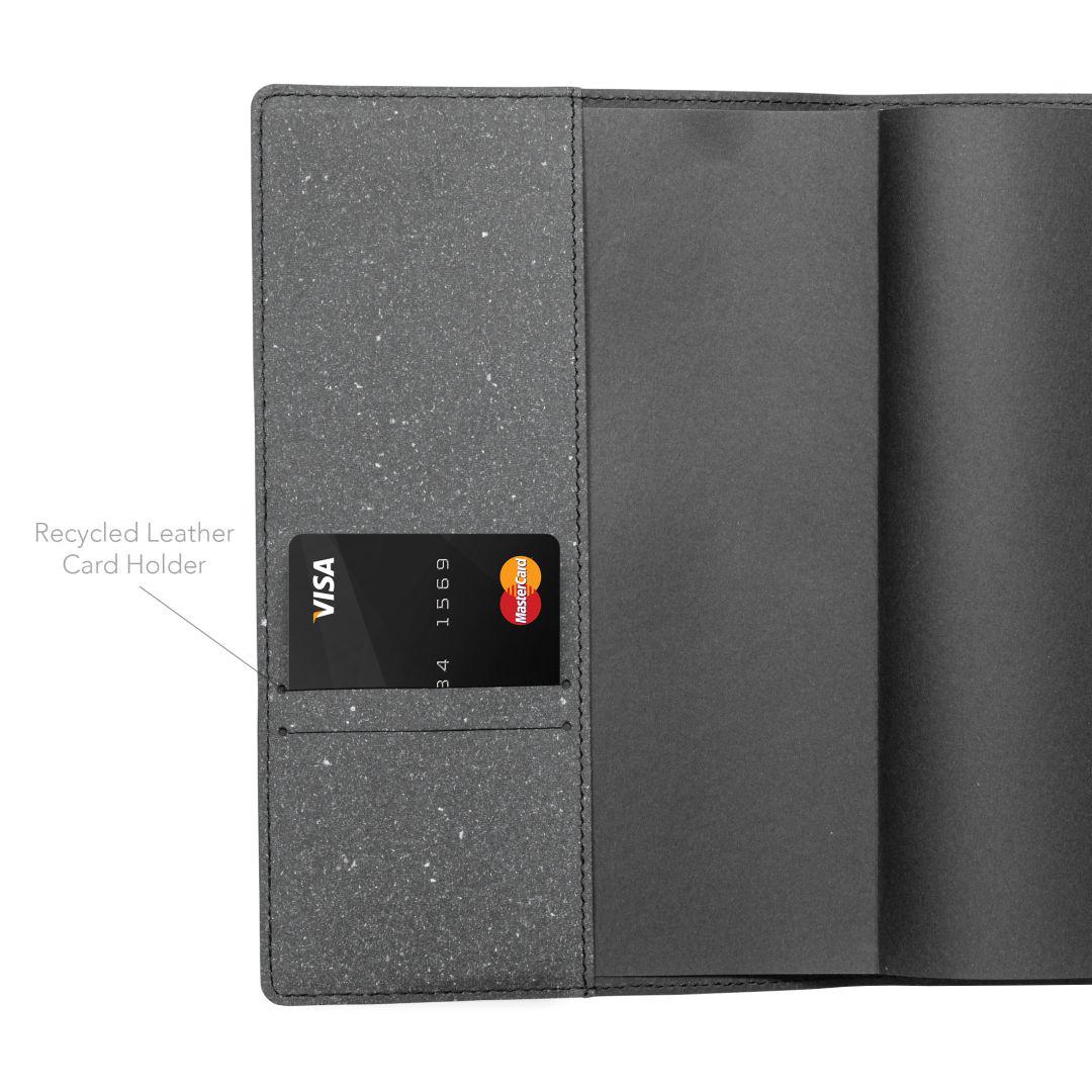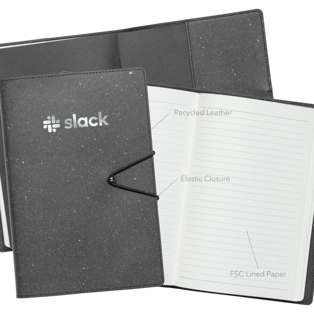 The Rowan Recycled Leather Journal combines sustainability and style with a sleek cover made from 70% recycled leather and FSC-certified paper, and 96 sheets. Complete with an elastic band closure and packaged in a matching box, it’s a refined and eco-conscious choice for everyday note-taking.Product Size: 5.75″ W x 8.75″ H. 5.75″ W x 8.75″ H