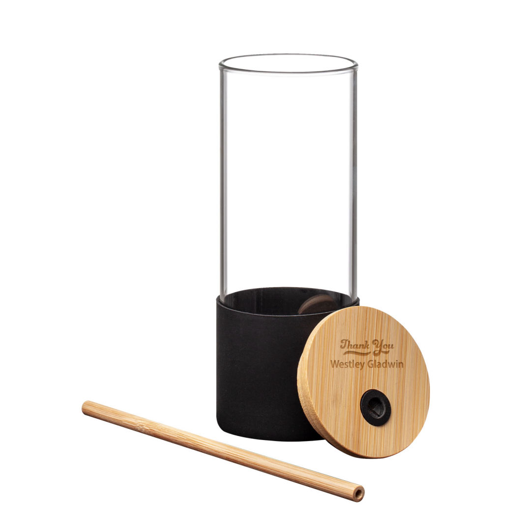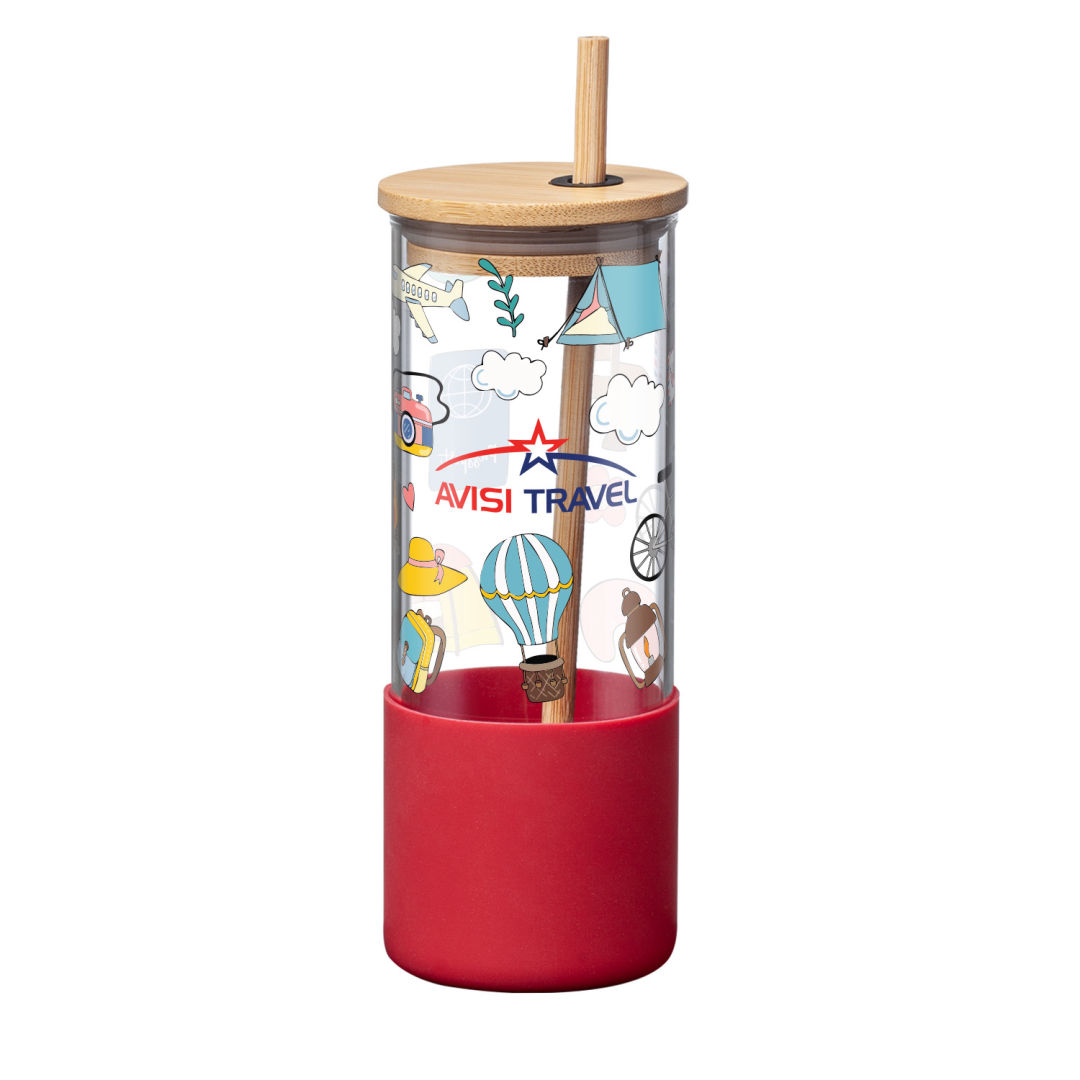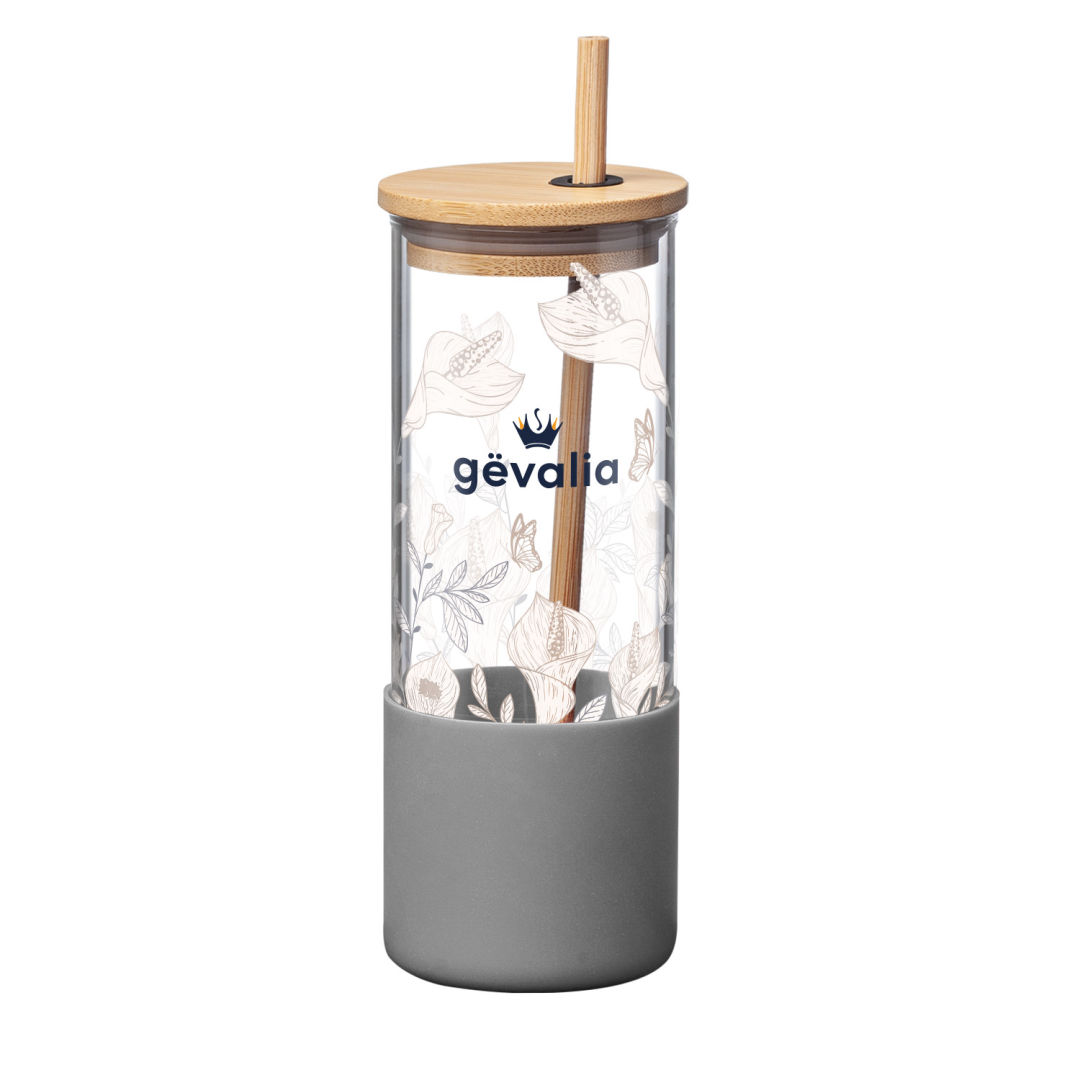 Shanti Borosilicate Tumbler features Borosilicate thermal resistant glass combined with colorful and vibrant silicone sleeves. The bamboo lid and matching bamboo straw make these trend-setting and stylish bottles the perfect vessel to stay hydrated. 2.5″ W x 7.25″ H