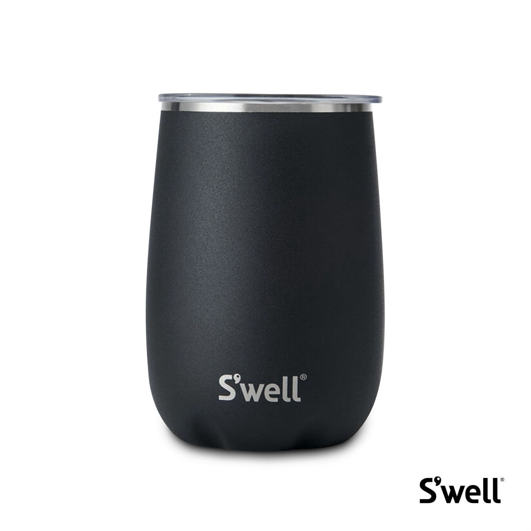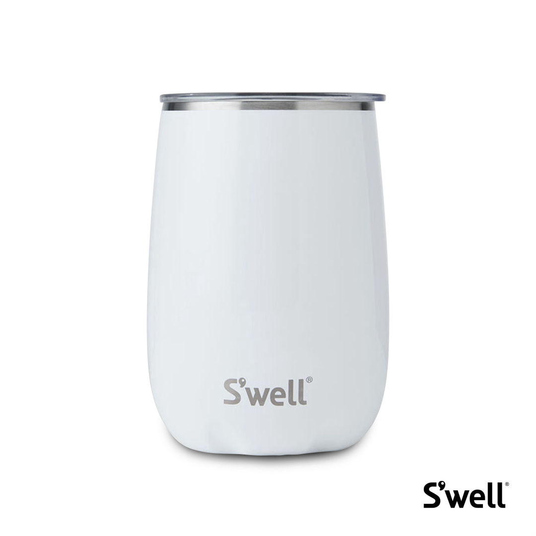 Perfect for sipping stylishly at home or al fresco, the Wine Tumbler keeps your wine cool for longer.Features- Therma-S’well® Technology with triple-layered, vacuum– insulated construction designed to keep drinks colder or hotter for longer.- Stemless design is ideal for indoor or outdoor use.- Splash-proof, Slide-Open Lid.- 18/8, food-grade stainless steel.- Condensation-free exterior won’t sweat in your hands or on countertops and tabletops.Product Size: 3.5″ W x 5″ H x 3.5″ D. 3.5″ W x 5.0″ H x 3.5″ D