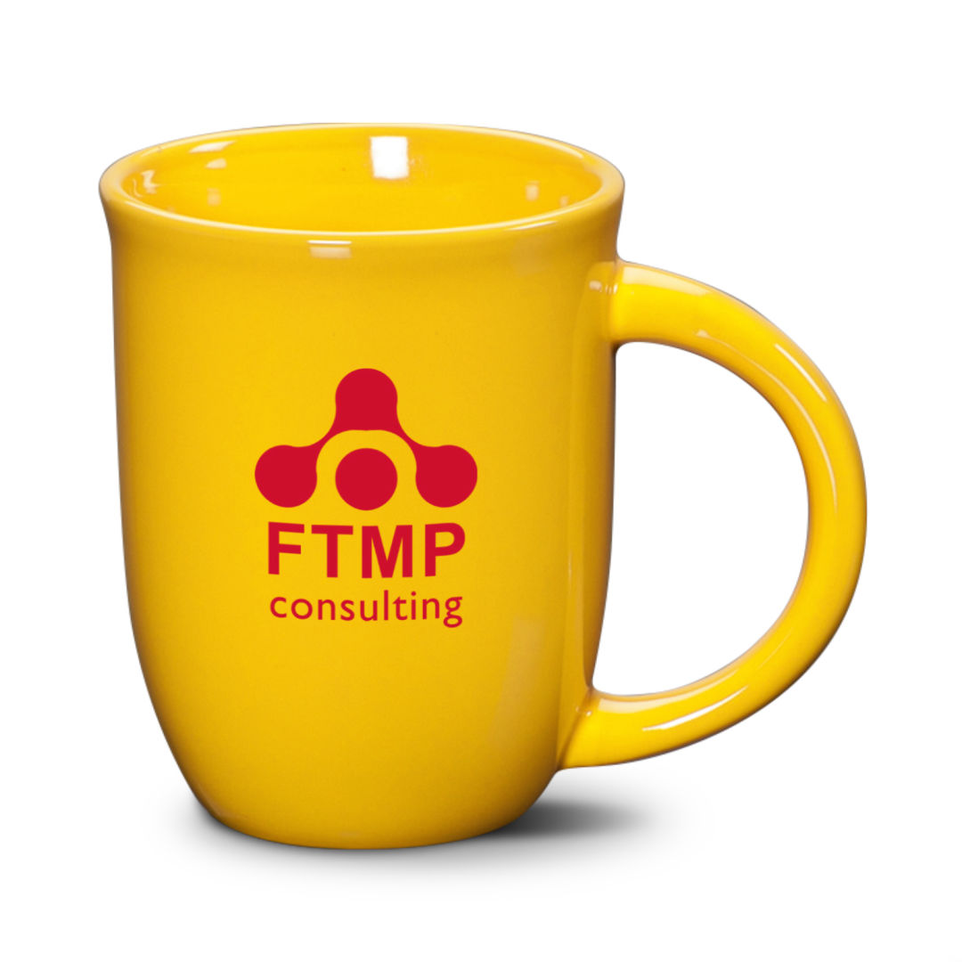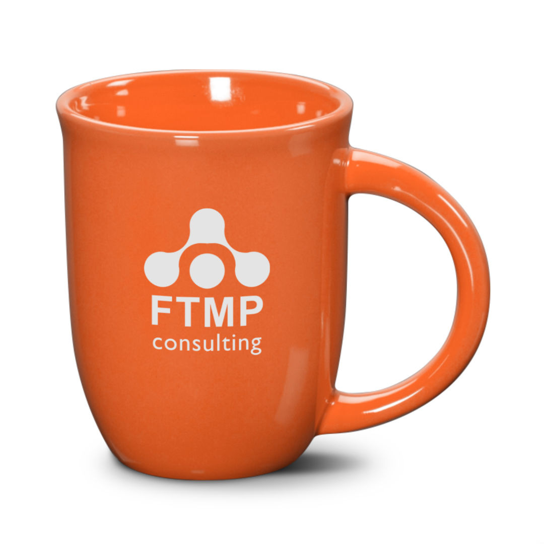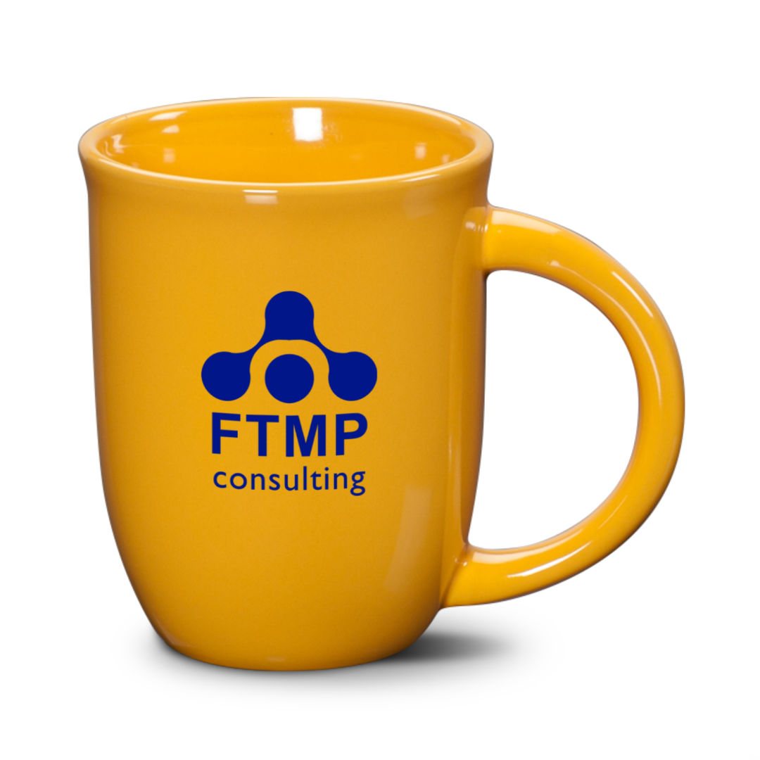 Beautifully glazed 14oz ceramic mug with a subtle flared lip for easy sipping of your morning brew. Available in a multitude of vibrant and glossy colors and with Deep Etch or 1 Color Imprint.