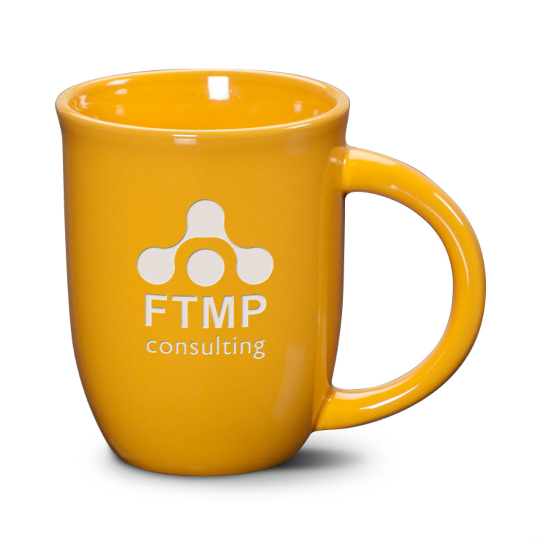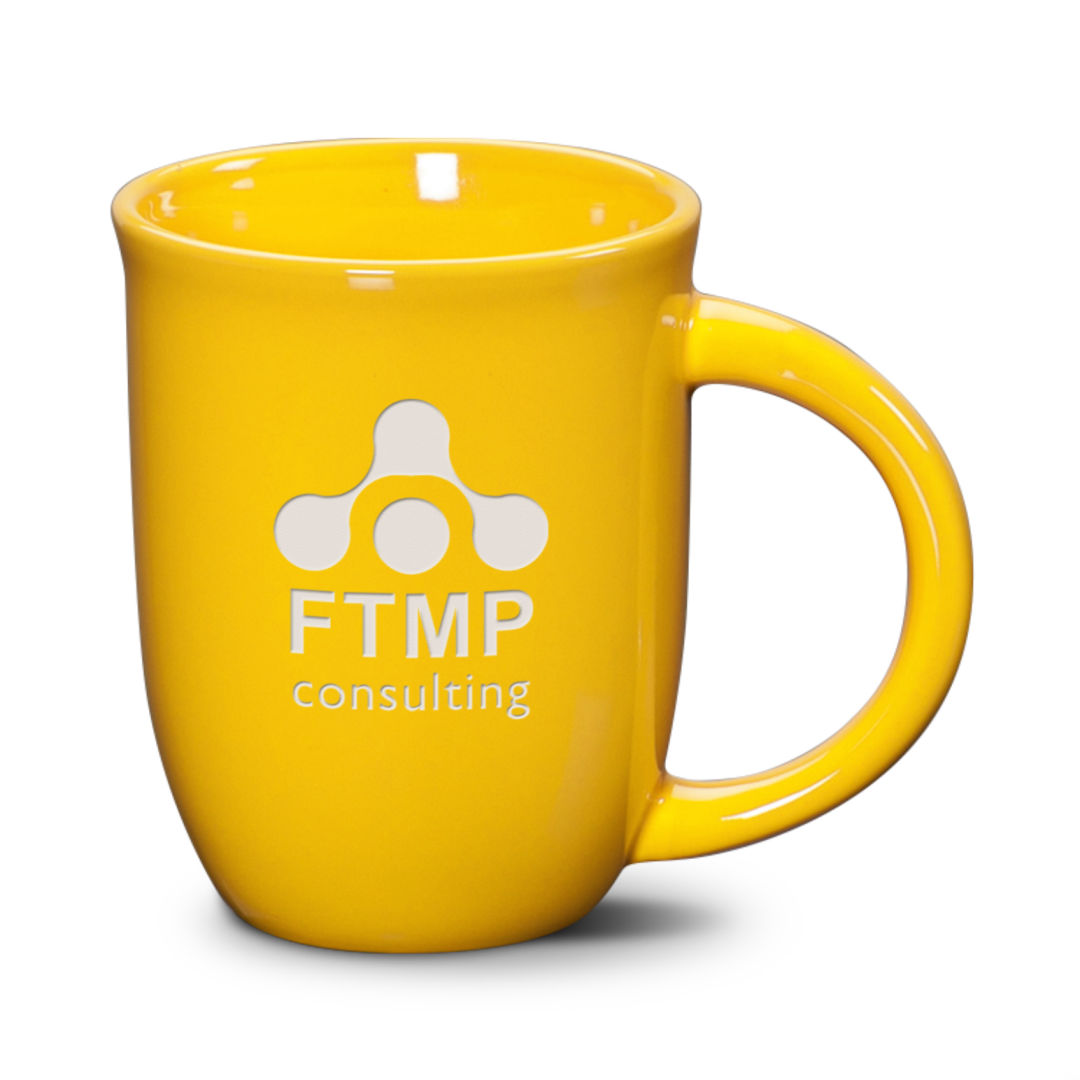 Beautifully glazed 14oz ceramic mug with a subtle flared lip for easy sipping of your morning brew. Available in a multitude of vibrant and glossy colors and with Deep Etch or 1 Color Imprint.