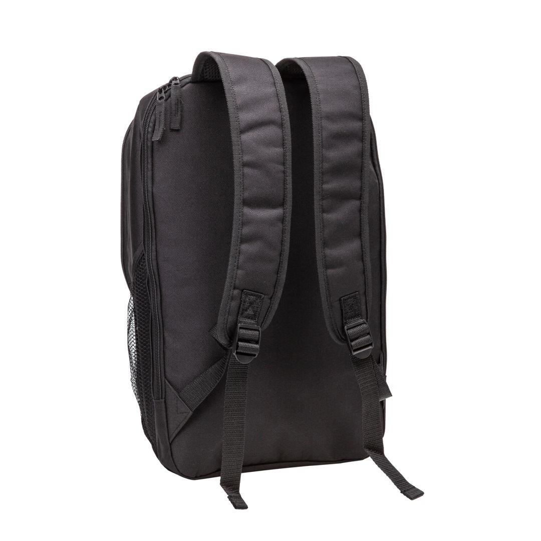 Teton Backpack is a trendy multi-functional backpack that is perfect for school, work, gym, trips, and excursions. Featuring…- Weather resistant, poly outer fabrication with vibrant colored accents- 600D polyester mesh padded shoulder strap for comfort- Laptop compartment with easy earphone access- Top loading design for more secure content storage- A stretchable, ventilated mesh utility pocket- laptop pouch can fit a laptop up to 17″ Product Size: 16″ W x 20.5″ H. 15.0″ W x 20.84″ H