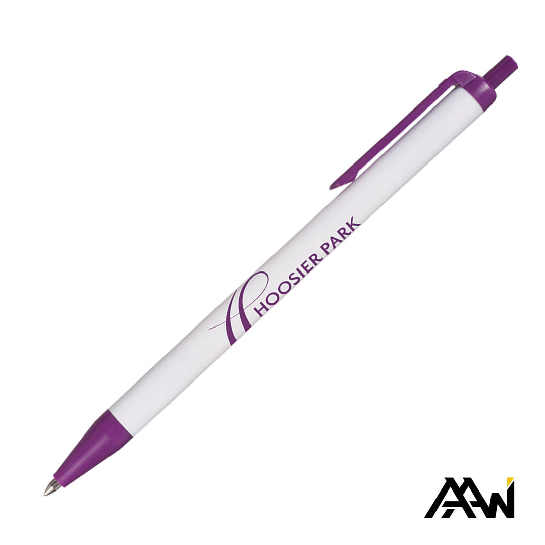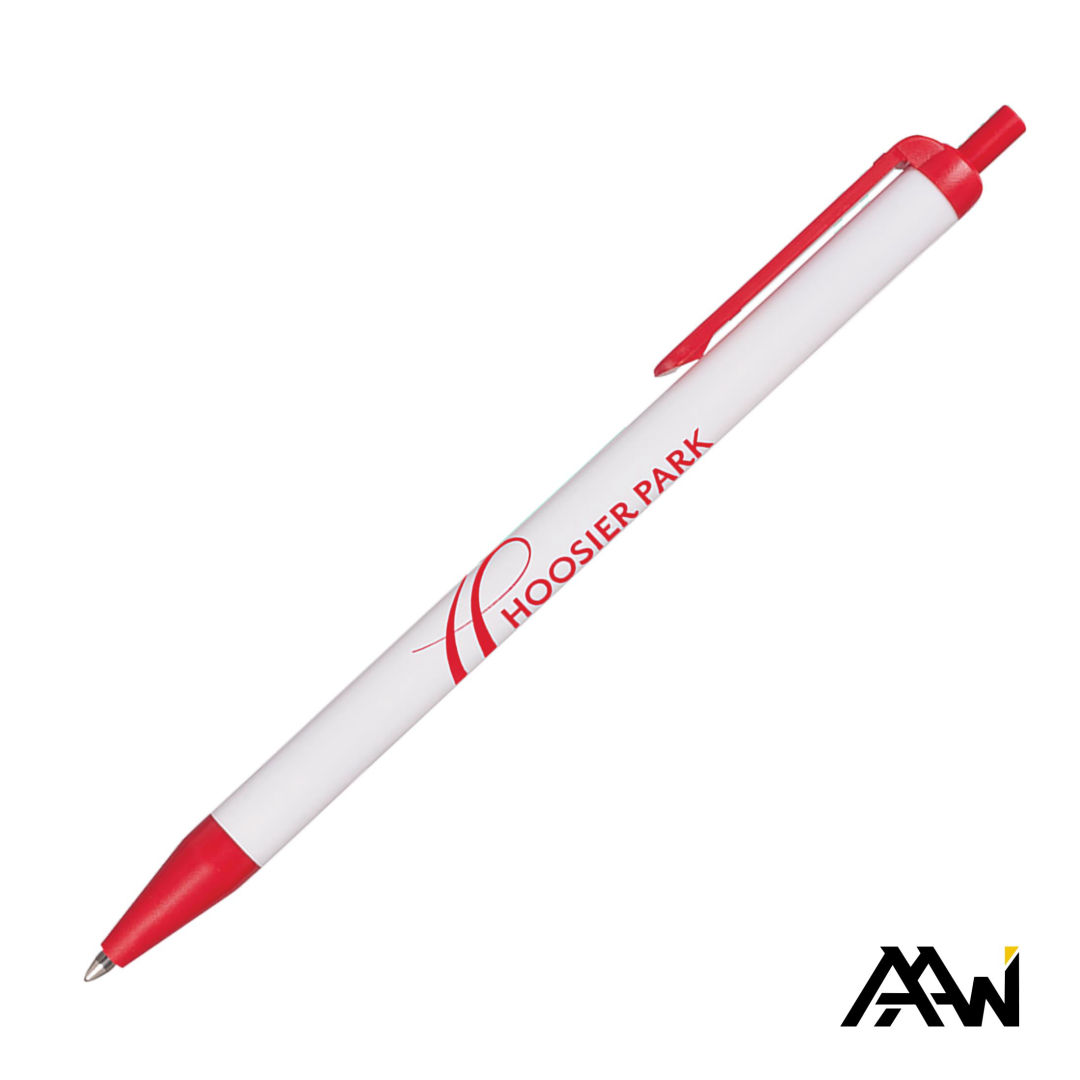 This Value Slim Pen features a sleek glossy white barrel accented by vibrant matte-colored trim for a clean, modern look. Designed with smooth black ink for effortless writing, it’s an excellent choice for everyday use or promotional branding. Extra charge applies for optional clip imprint, offering added customization to highlight your logo or message.Pen Size: 5.5″ W x 0.34″ H. 5.5″ W x 0.34″ H