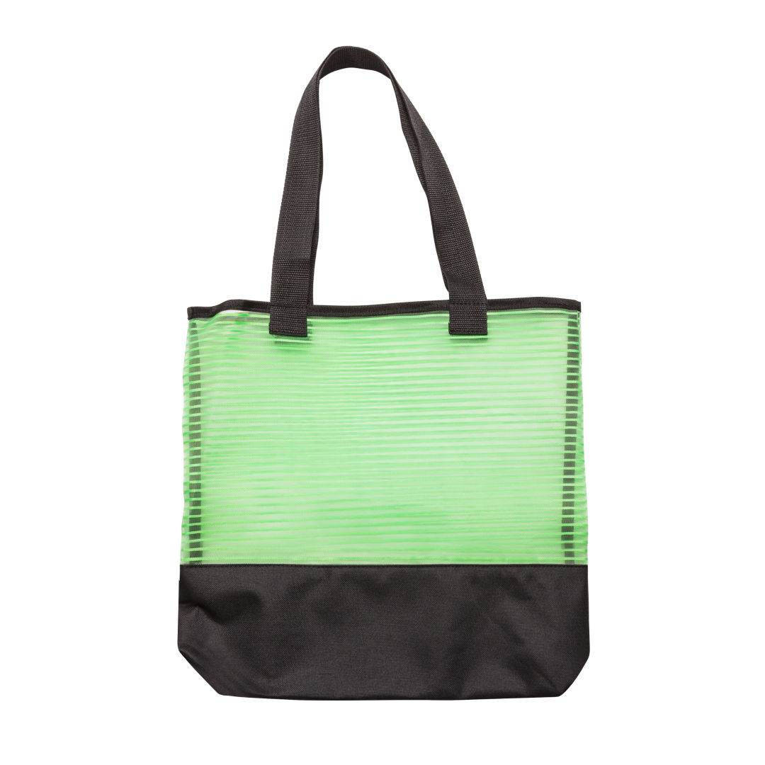 Fashion-forward tote bag made from 600D polyester and nylon mesh- Polyester webbed handle straps – Perfect for a trip to the grocery store to even a day at the beach!- Available colors: Blue, Green, Grey, Purple, and Red Product Size: 15″ x 15″ x 4.5″. 15.0″ W x 15.0″ H x 4.5″ D