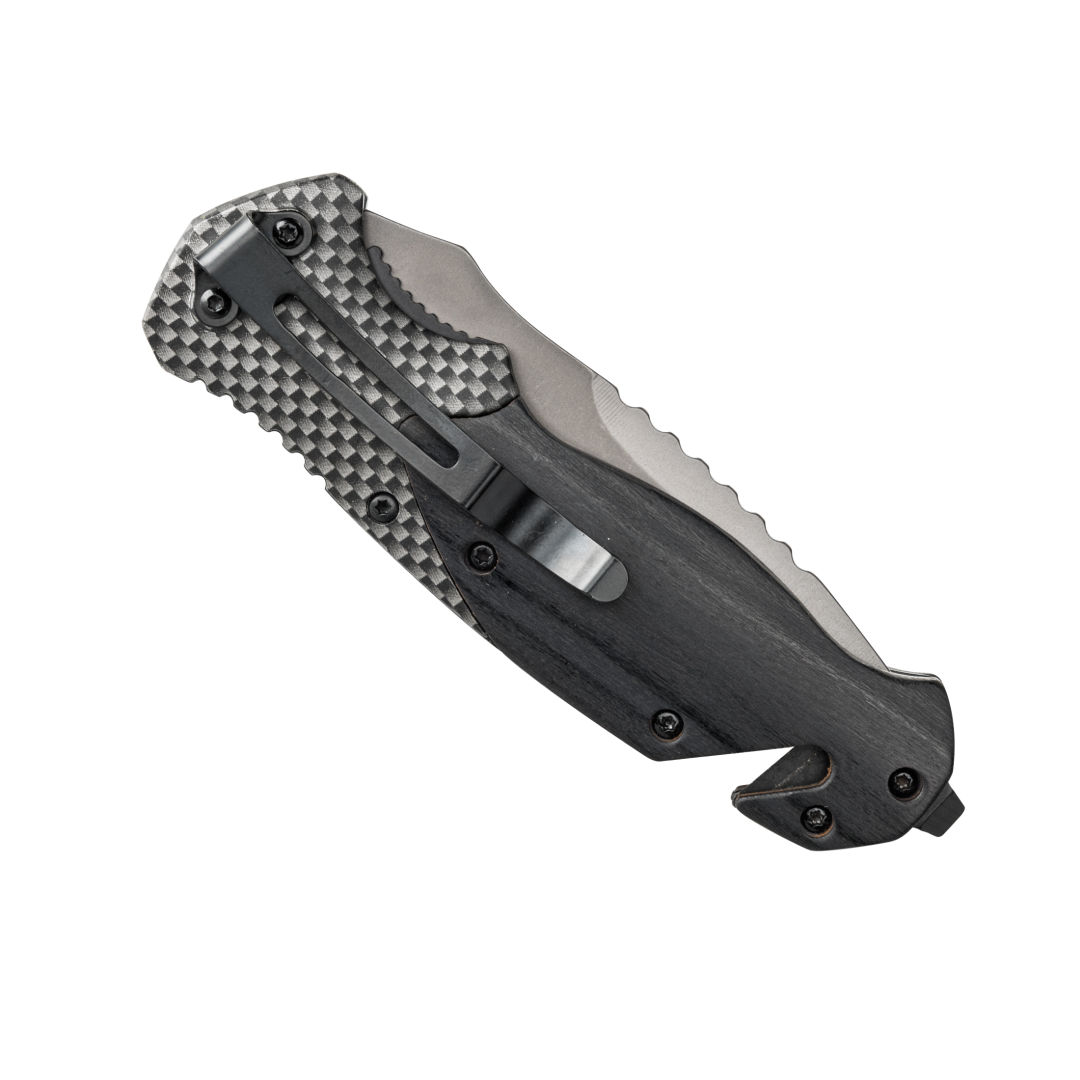 The Whitetail Pakka Wood Pocket Knife is a versatile tool featuring a sharp blade, clipper, and a secure blade lock for safety. Crafted with an olive wood and carbon fiber handle, it offers both functionality and a touch of rustic elegance.Product Size: 4.75″ W x 1.5″ H (Closed). 4.75″ W x 1.5″ H
