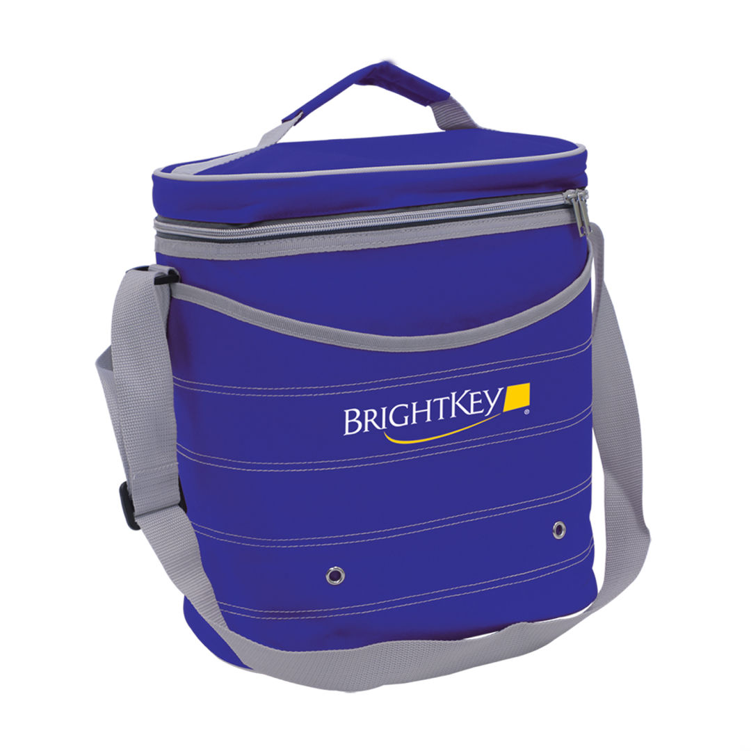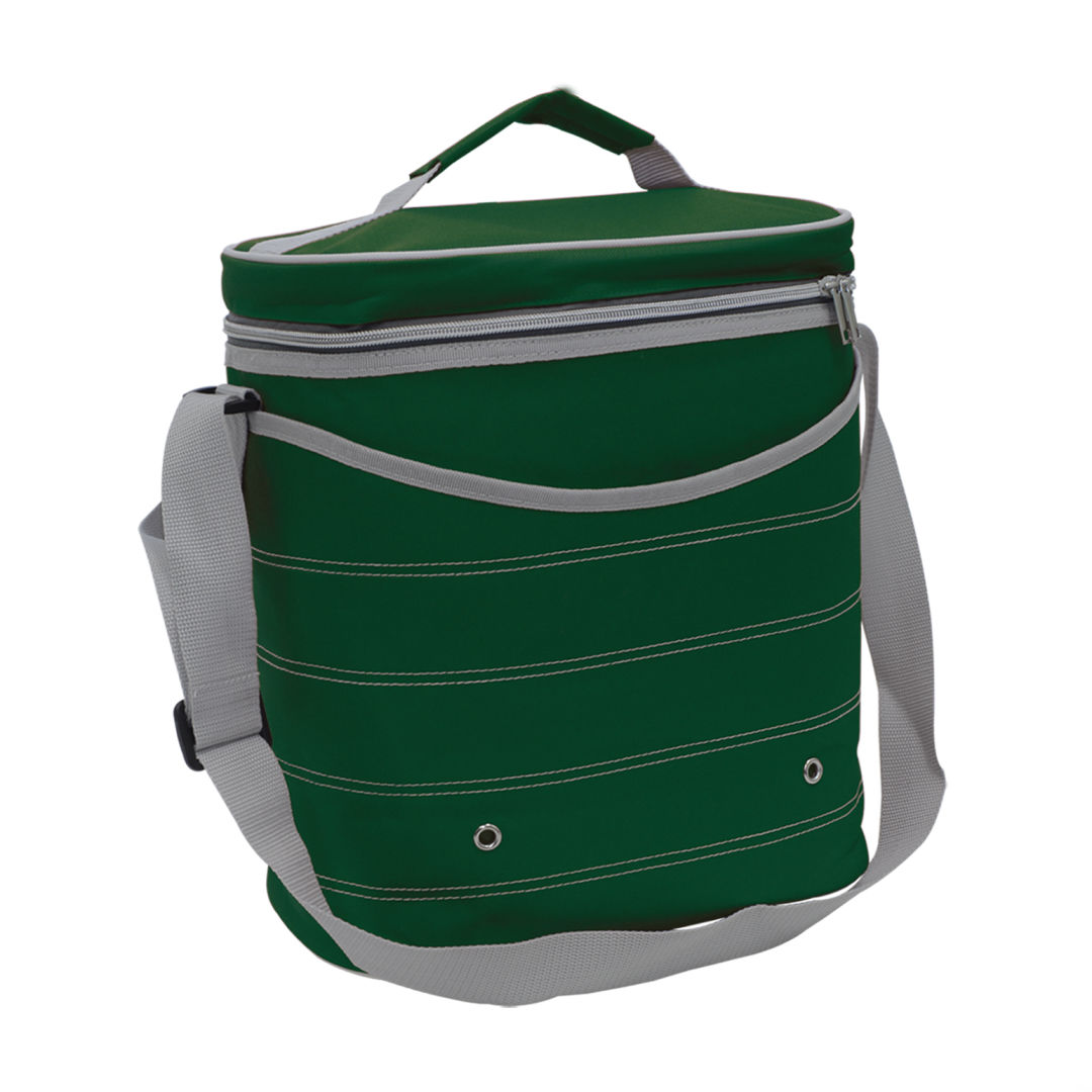 600D polyester cooler bag- Includes shoulder strap for ease of transport- Heat sealed and leak-resistant insulated interior- Includes front and back exterior pockets with internal elastic compartmentProduct Size: 11.5″ x 12.5″ x 7″. 13.0″ W x 11.75″ H x 7.5″ D